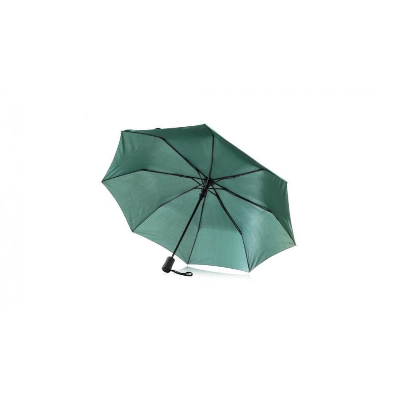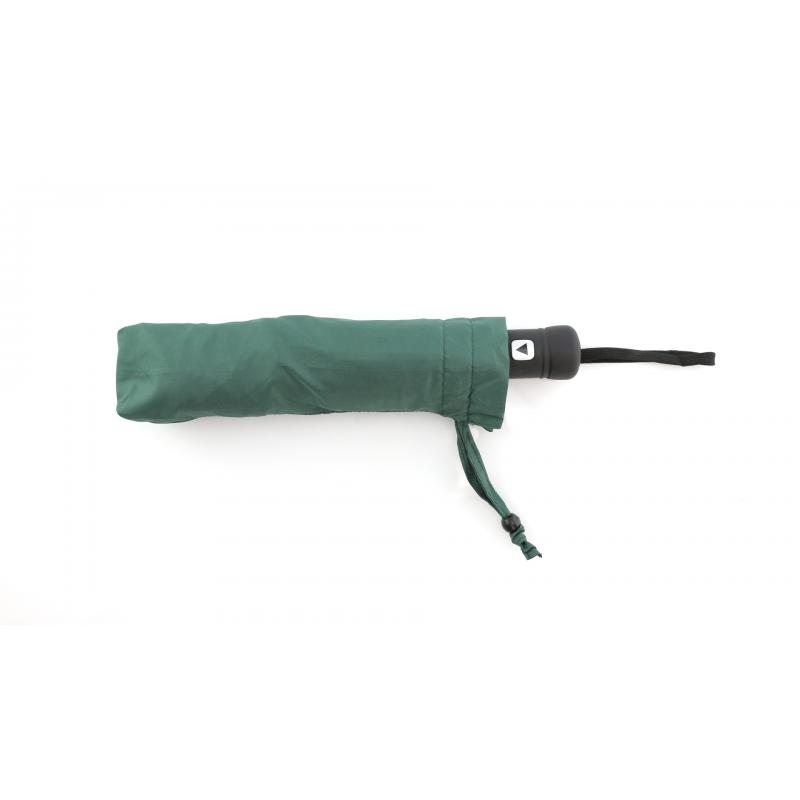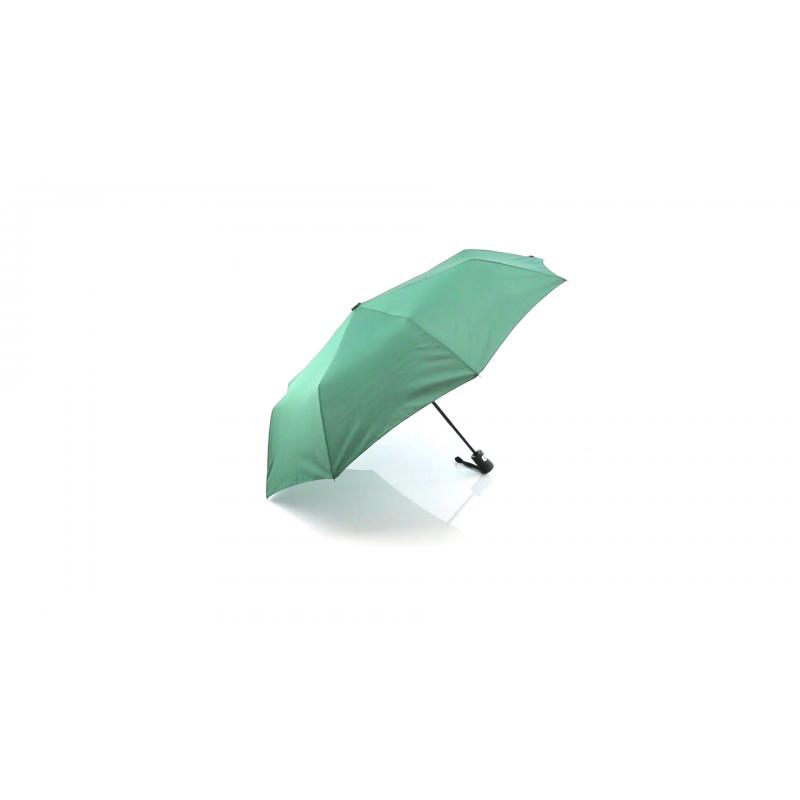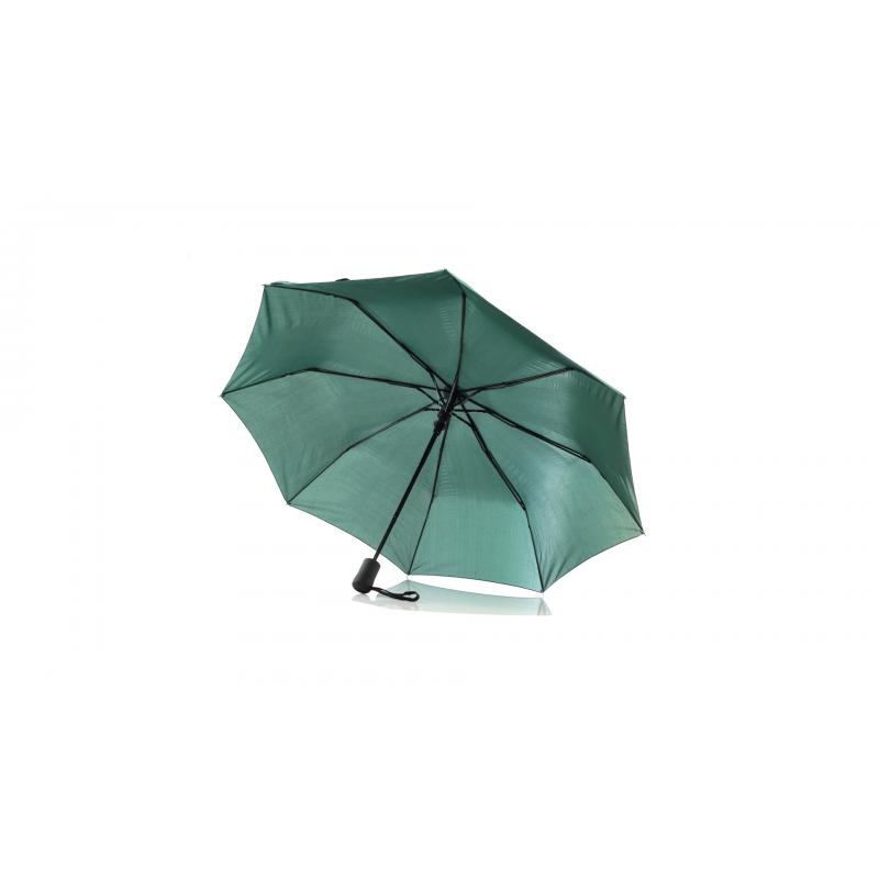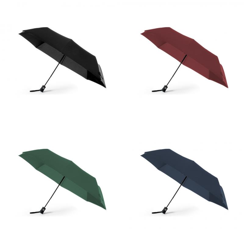 Paraguas plegable de alta calidad de 8 paneles en sobrios colores. De 98cm de diámetro, con apertura automática y en resistente material pongee. Con varillas metálicas en color negro, cierre de velcro y mango ergonómico con cinta de transporte. Presentado en funda individual a juego.