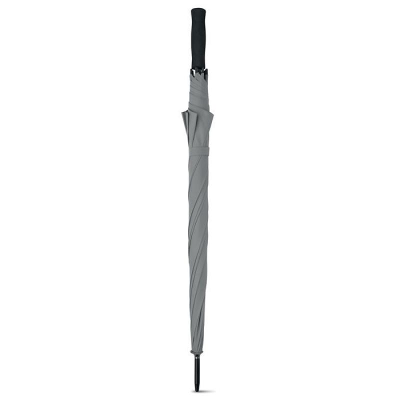 Paraguas de 27'' con apertura automática. Fabricado en pongee 190T con mango recto de EVA .Eje y puntas metálicas de color negro. Cierre manual.