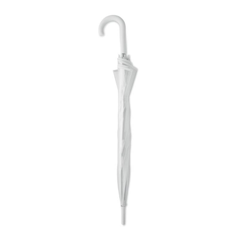 Paraguas de 23'''' recto en POE con ribete PG y 1 panel en poliéster para zona de impresión. Apertura manual. Fibra de vidrio, varillas y marco. Eje cromado con puntas de plástico. Mango acabado en goma.Recipiente :