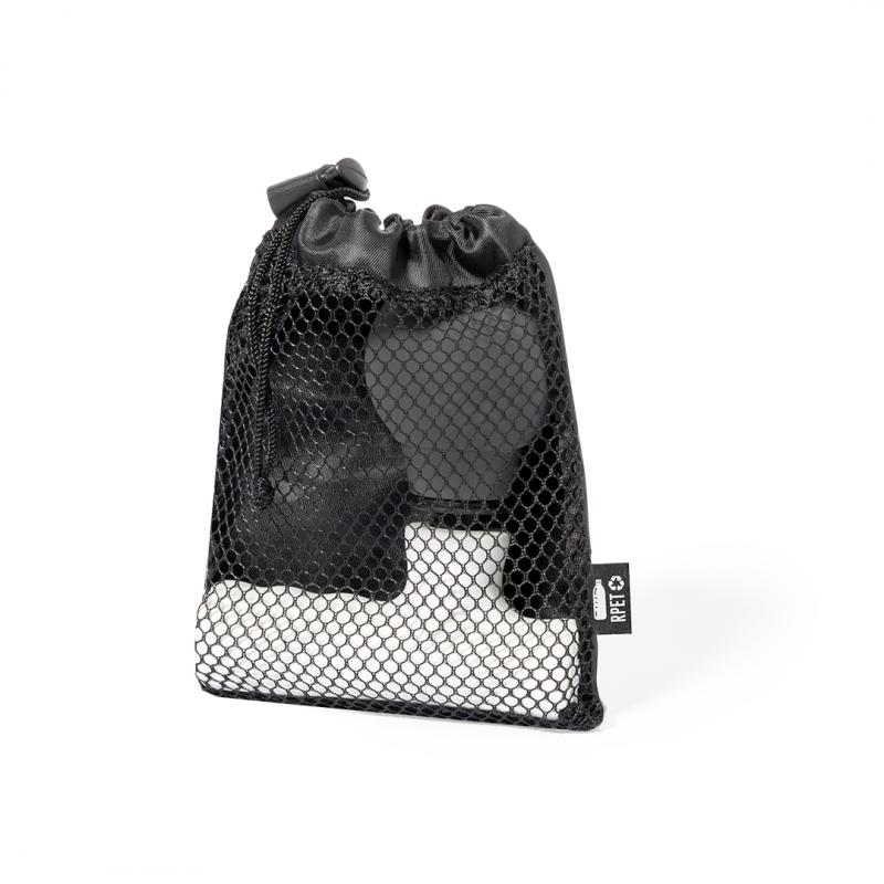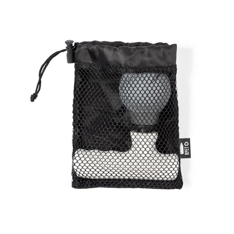 Masajeador eléctrico. Ayuda a relajar los músculos, aliviar los efectos del entrenamiento, liberar tensión y revitalizar el cuerpo. Con dos posiciones de intensidad. Batería recargable de larga duración de 800 mAh - cable USB incluido-. Con manual de uso en español e inglés. Presentado en funda de poliéster RPET con cierre de cordón, elaborada a partir de plástico reciclado para así fomentar la reutilización de residuos plásticos y contribuir a la sostenibilidad del planeta. Etiqueta distintiva RPET en la funda.