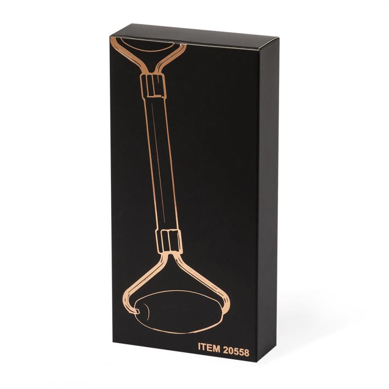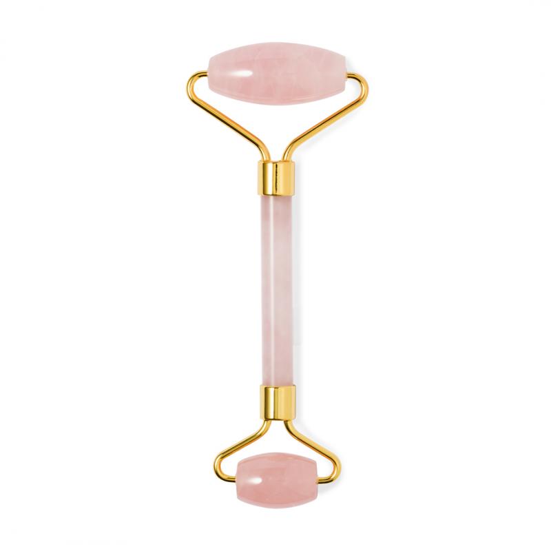 Rodillo facial de alta calidad fabricado en piedra jade rosa. Agradable masajeador de mano para el rostro, con cilindros faciales fabricados en suave piedra pulida. Ayuda a reducir la hinchazón y aporta brillo a la piel refinando los poros, eliminando toxinas y mejorando la elasticidad de la piel gracias a su efecto calmante. Presentado en una caja individual negra.