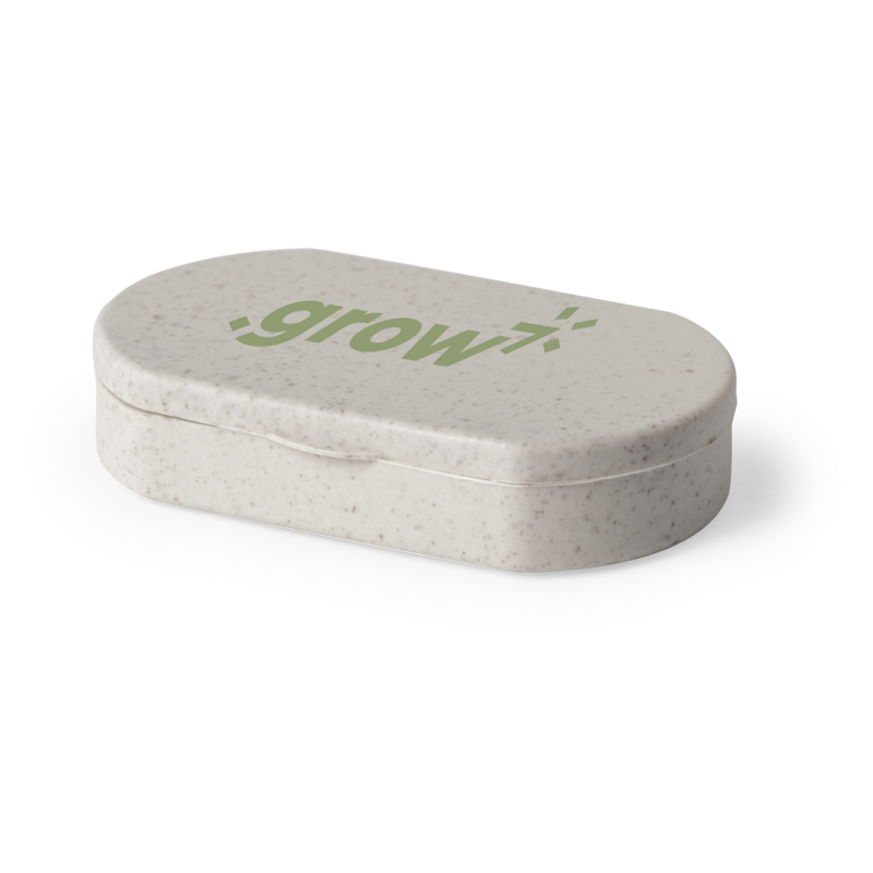 Pastillero en línea nature, fabricado en fibra de bambú. Con 3 compartimentos y cierre de seguridad.
