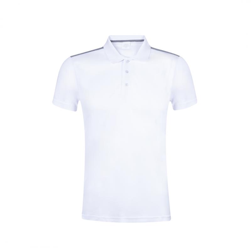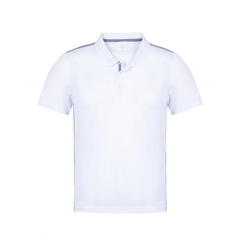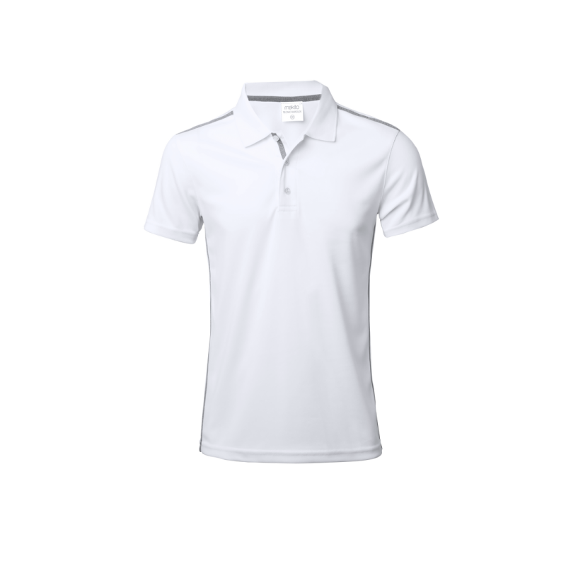 Polo técnico para adulto en poliéster transpirable de 180g/m2. De elegante diseño bicolor, en color blanco con contraste de detalles en gris. Disponible en tallas S, M, L, XL, XXL. Color blanco especialmente fabricado para marcaje en sublimación.