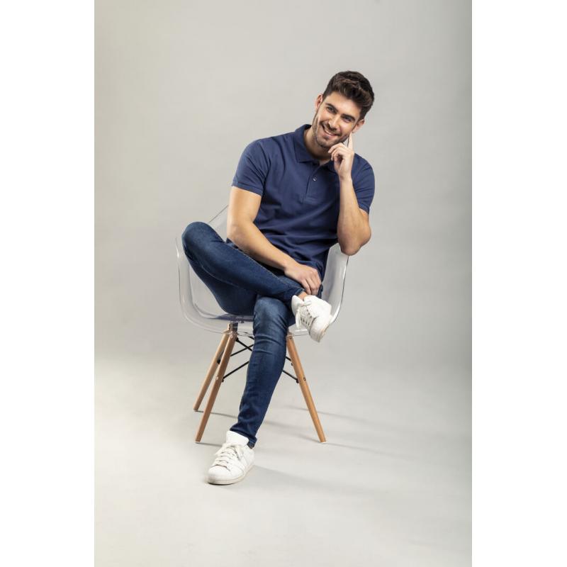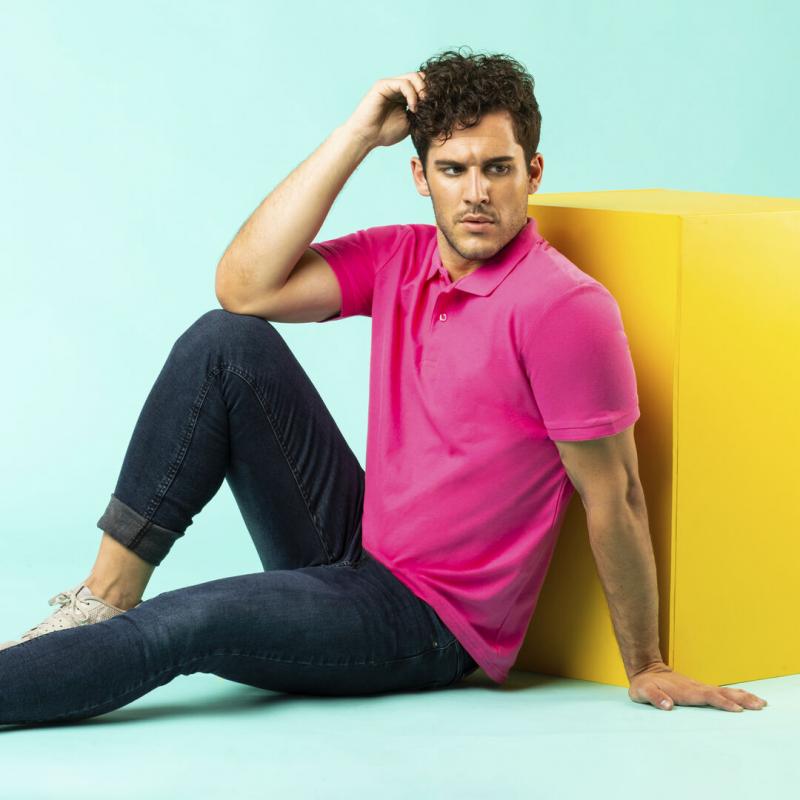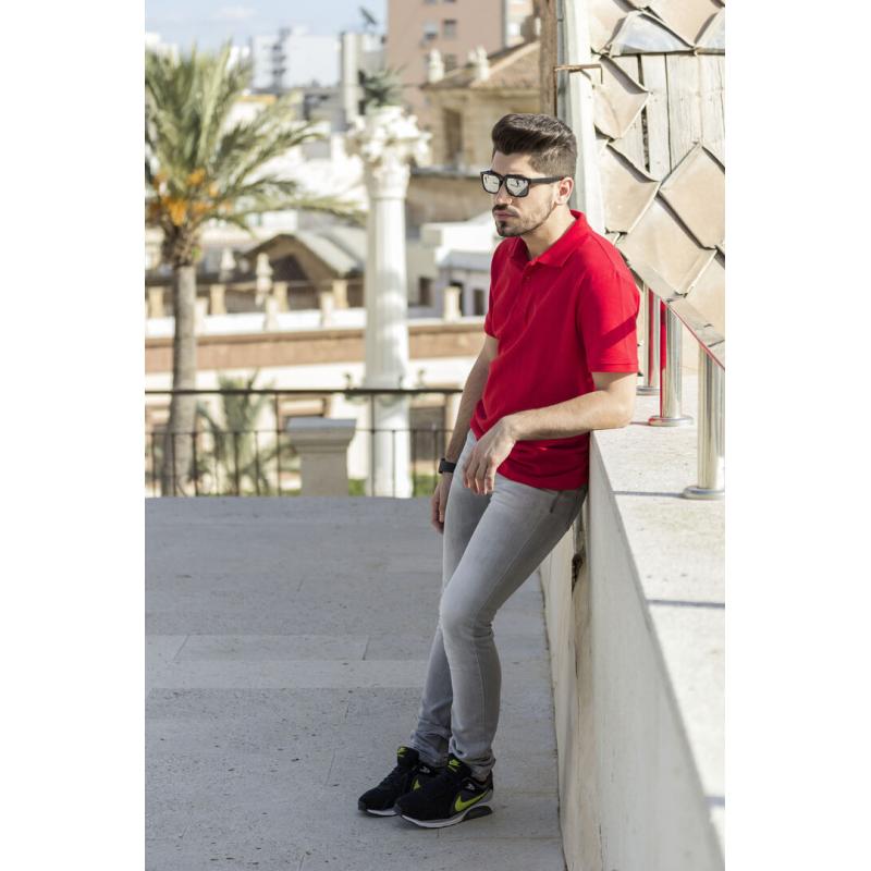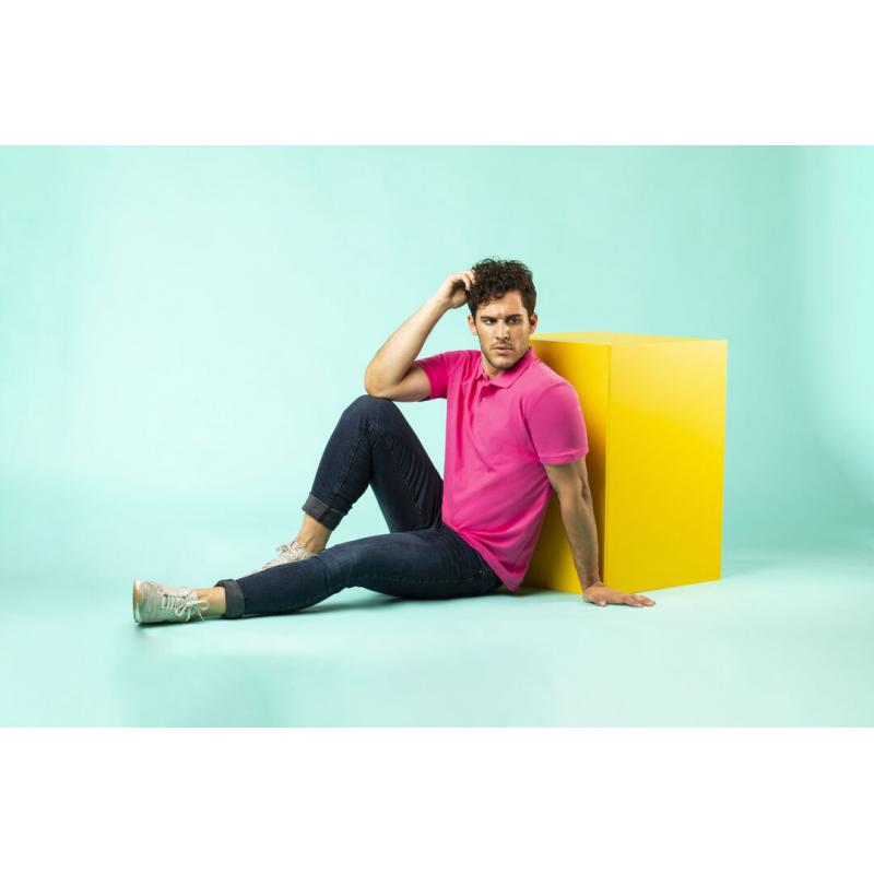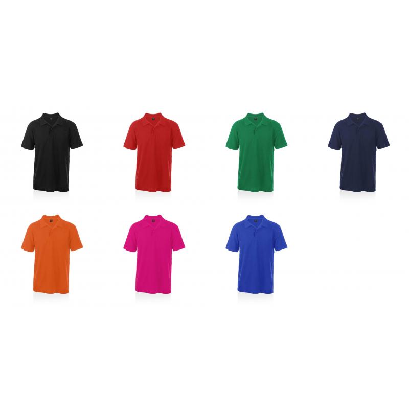 Polo de piqué en material 100% algodón. Con dos botones de cierre a juego y disponible en variada gama de vivos colores. Tallas S, M, L, XL, XXL