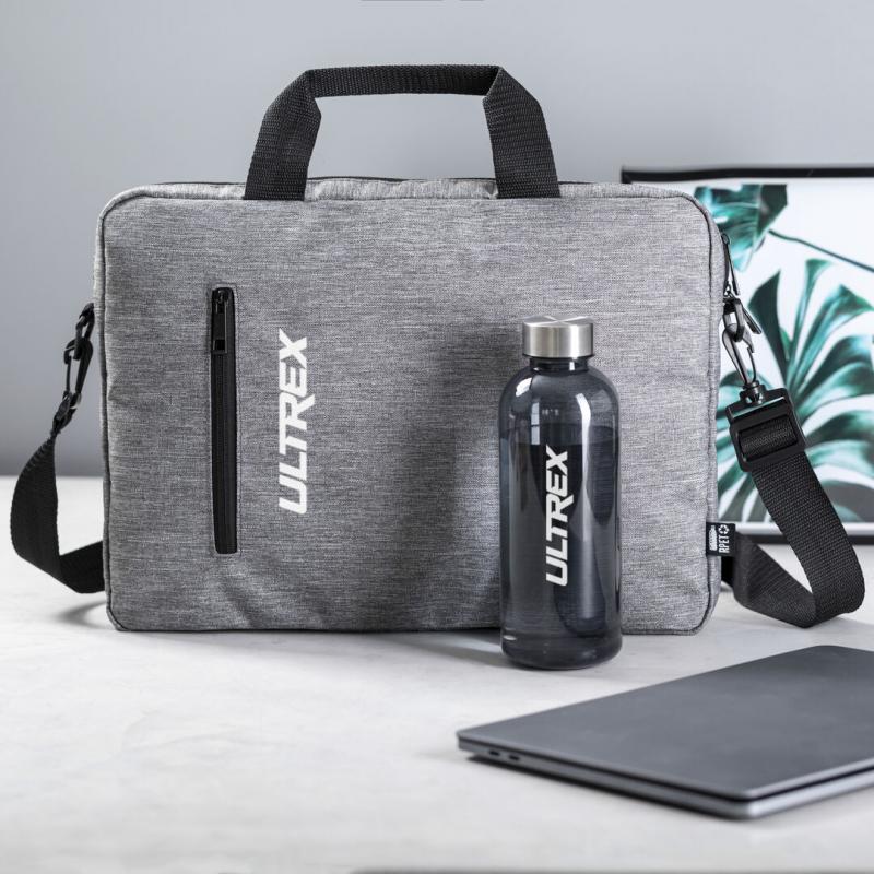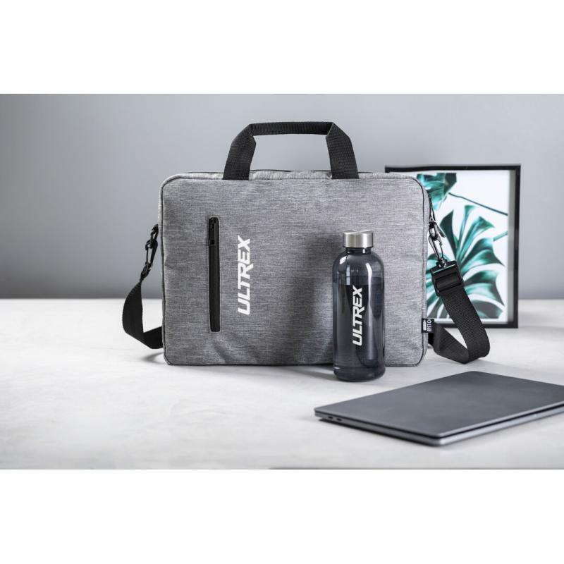 Elegante portadocumentos de línea nature en resistente 600D RPET efecto melange, elaborado a partir de plástico reciclado para así fomentar la reutilización de residuos plásticos y contribuir a la sostenibilidad del planeta. Detalles en negro, incluye compartimentos interiores acolchados para ordenador de hasta 15 pulgadas y tablet de hasta 10 pulgadas. Accesorio en parte posterior para anclaje al trolley, bolsillo exterior con cierre de cremallera, cómodas asas reforzadas, cinta bandolera ajustable con cierre de mosquetón y almohadilla para hombro a juego. Distintivo RPET en etiqueta exterior.
