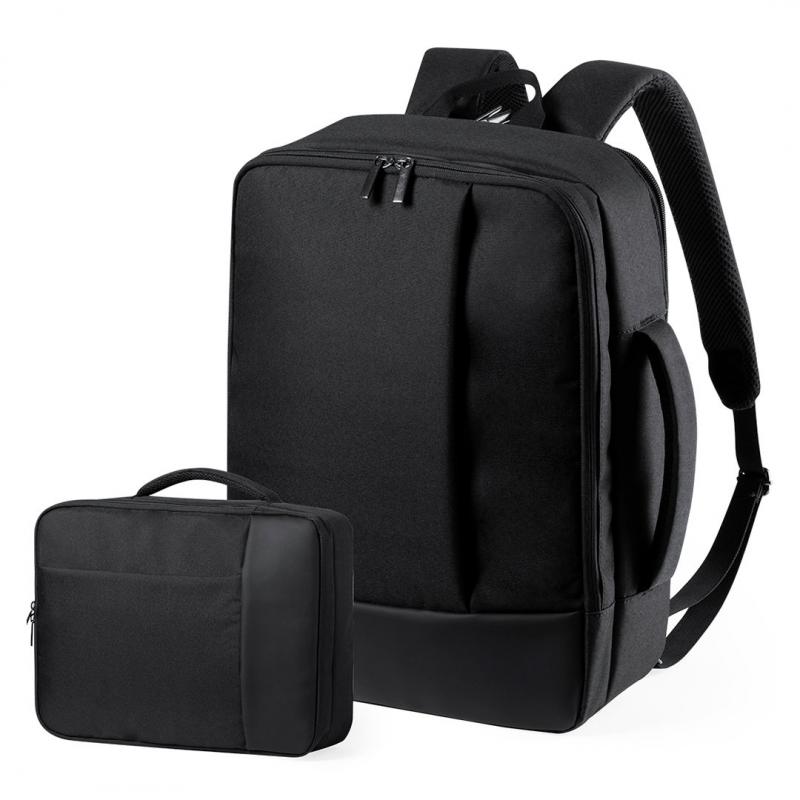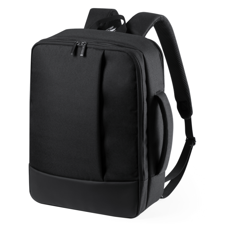 Mochila portadocumentos en combinación de resistente poliéster 300D con detalles en polipiel. De diseño urbano, compartimento principal con cierre de cremallera de doble tirador y bolsillo acolchado para portátil de hasta 15 pulgadas. Con cintas de hombros y espalda acolchadas, de ajuste regulable. Con accesorio para ajuste en trolley y bolsillo para ocultar las cintas de la espalda cuando se usa como portadocumentos.