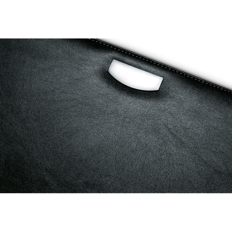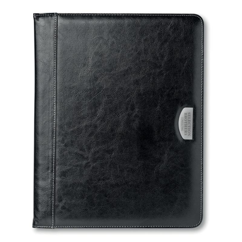 Porta documentos A4 de material PU con placa de metal para el logo. Incluye bloc de notas de 20 hojas.