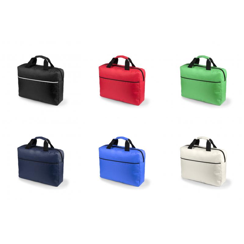 Portadocumentos de cierre de cremallera en suave acabado de poliéster 600D de vivos colores y con asas de transporte con refuerzo a juego.