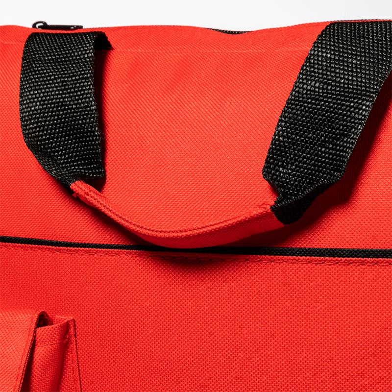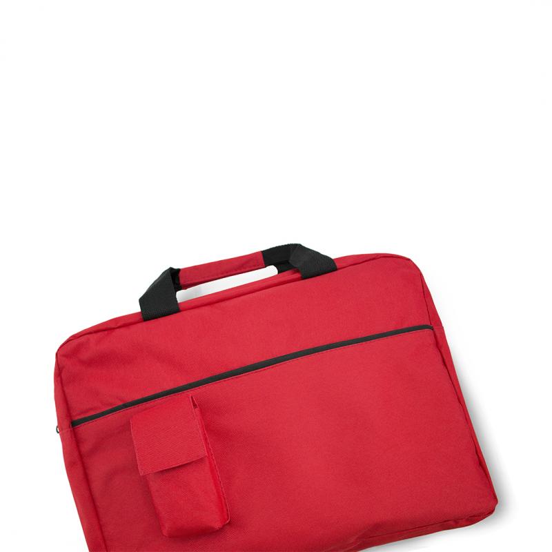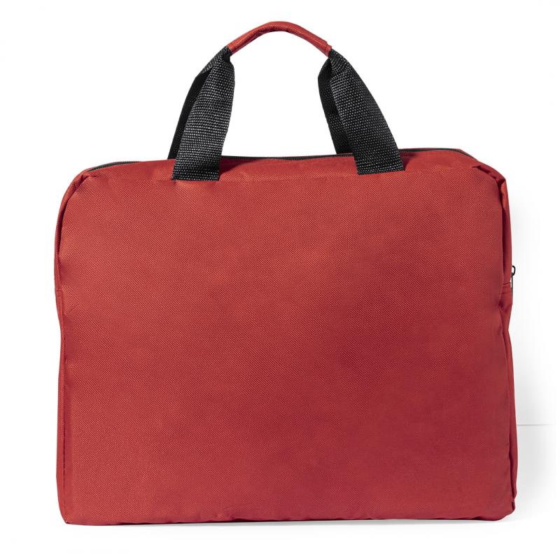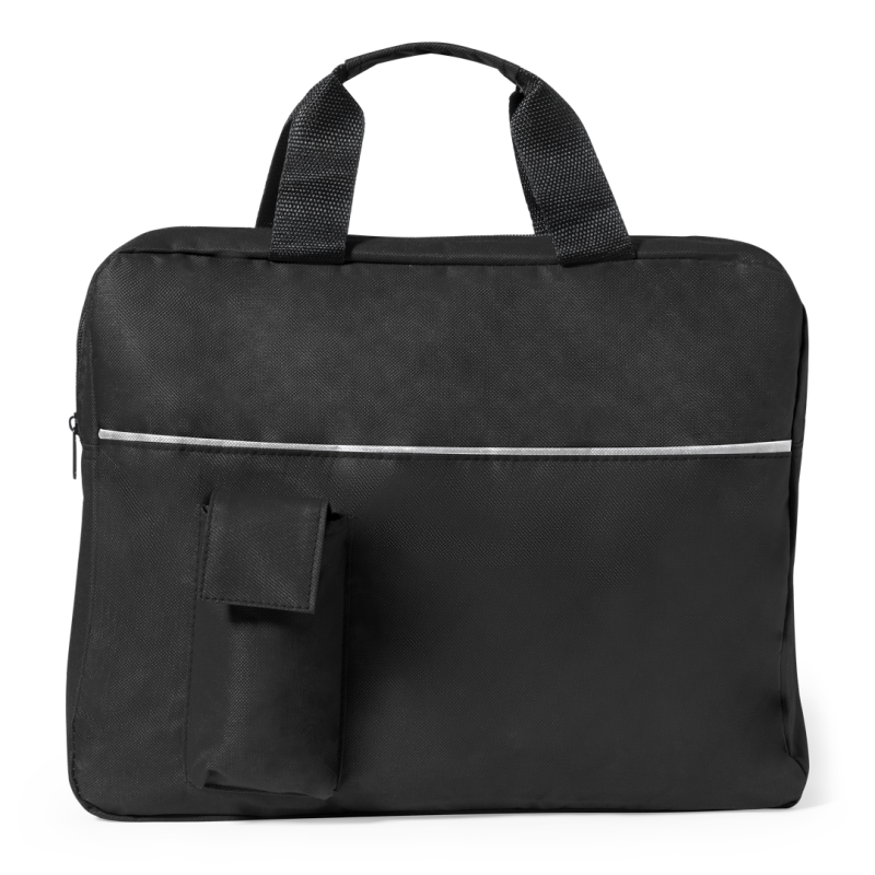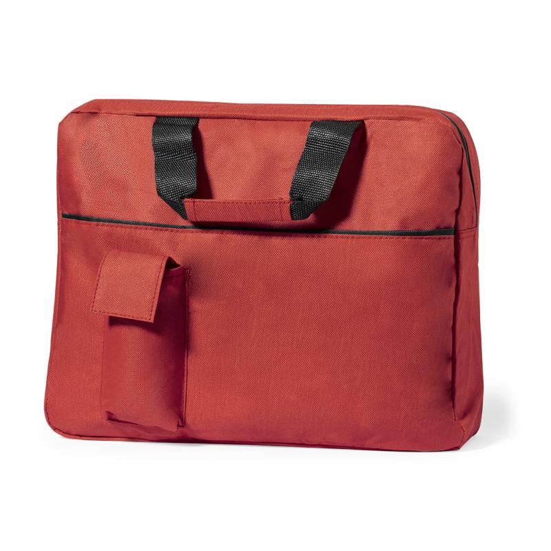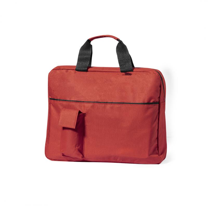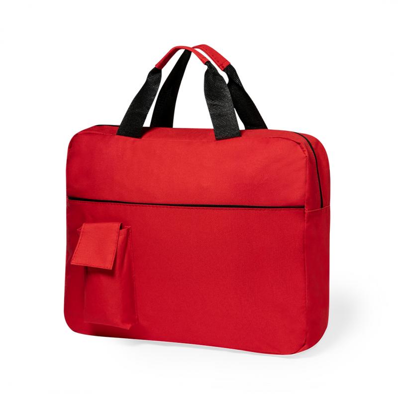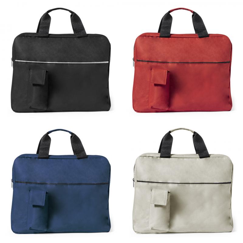 Portadocumentos de cierre de cremallera en suave acabado de poliéster 600D de vivos colores. Con asas de transporte con refuerzo a juego y bolsillo frontal para smartphone con cierre de velcro.