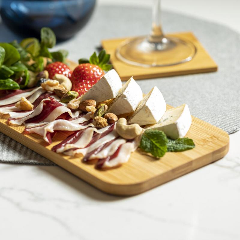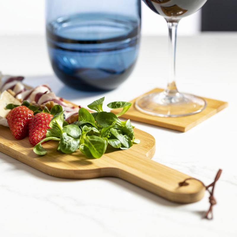 Set de 4 posavasos de línea nature en cajita. Fabricado en bambú lacado y presentado en atractiva caja individual de diseño eco.