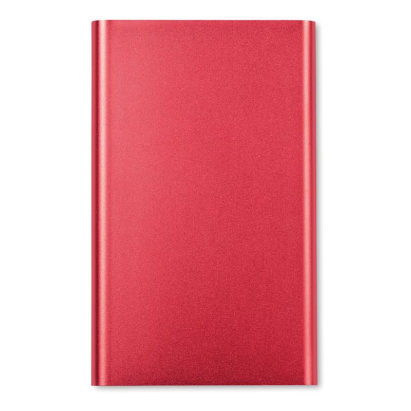 Power bank plano de 4000 mAh en aluminio. Compatible con smartphones.Corriente de salida DC5V/1A. 2 puertos de entrada. Incluye cable micro USB.