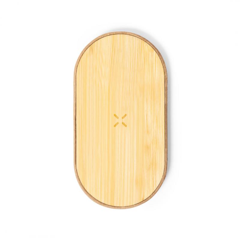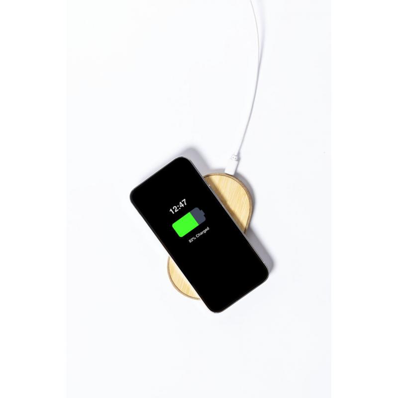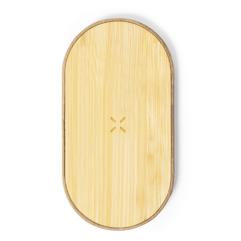 Cargador inalámbrico 10W de línea nature, con base fabricada en cartón reciclado y superficie de carga en bambú. Compatible con dispositivos equipados con tecnología de carga inalámbrica Qi. Con indicador LED de estado de carga y cable de carga Tipo C incluido. Base antideslizante y presentado en caja individual de diseño kraft, con manual de instrucciones en español e inglés.Fabricado conforme a los estándares RoHS y en cumplimiento con los siguientes requisitos de seguridad:Sistema de protección contra sobrecalentamiento.Sistema de protección contra sobrecarga.Sistema de bloqueo para evitar cortocircuitos.