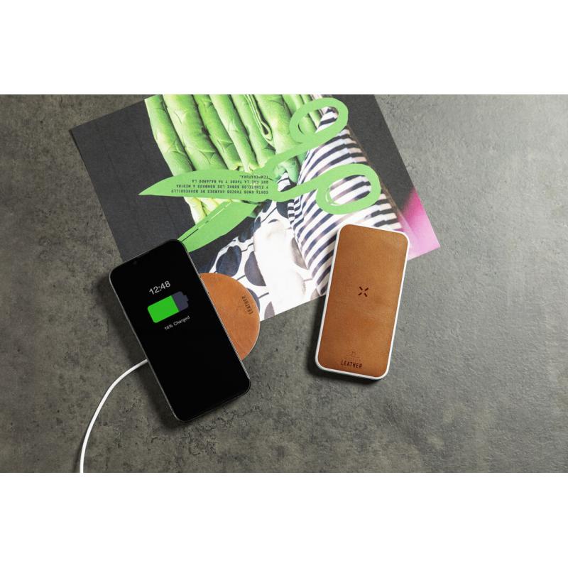 Batería auxiliar externa de 8.000 mAh con cargador inalámbrico integrado 10W, fabricada en combinación de RABS y cuero reciclado. Salida USB, con conexiones Tipo C de entrada y salida y Micro USB de entrada. Con indicadores LED de estado de carga y compatible con dispositivos equipados con tecnología de carga inalámbrica Qi. Incluye cable cargador Tipo C y manual de instrucciones en español e inglés. Presentado en caja individual de diseño kraft.Entrada/Salida USB C: 5-12V DC 3-1.5V, PD18WEntrada Micro USB: 5V DC 3ASalida USB: 5-12V DC 3-1.5AEl material RABS o ABS Reciclado y el cuero reciclado proceden del reciclado de artículos al final de su vida útil. Los materiales reciclados empleados incorporan la certificación RCS que garantiza el origen reciclado de los mismos.Las capacidades mostradas en todas nuestras baterías auxiliares externas son reales, incorporando todas ellas baterías de grado A y no recicladas, con una vida útil de al menos 500 ciclos de carga y según normativa CE. Además, están fabricadas conforme a los estándares RoHS y en cumplimiento con los siguientes requisitos de seguridad:Sistema de protección contra sobrecarga del power bank. Sistema de protección contra descarga completa que proporciona una mayor durabilidad del power bank. Sistema de bloqueo para evitar cortocircuitos. Sistema de transferencia de carga constante, acorde con la capacidad del dispositivo de destino.