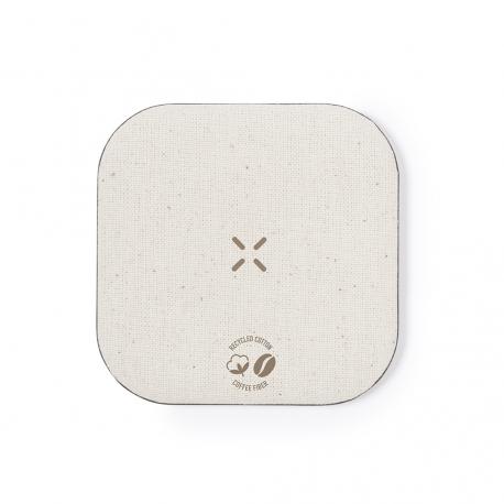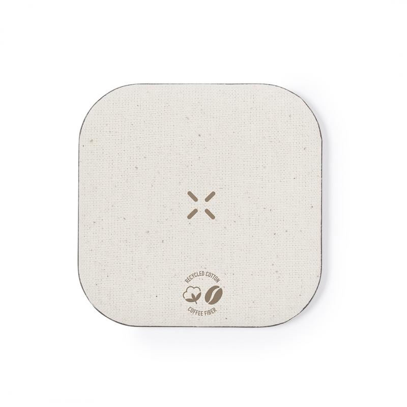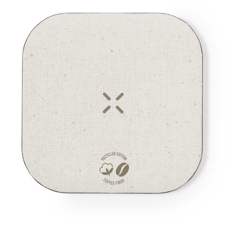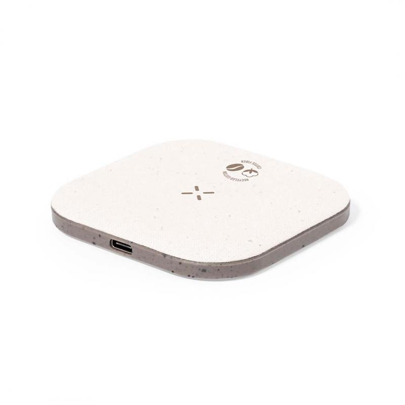 Cargador inalámbrico fabricado en fibra de café y algodón reciclado. Base antideslizante y compatible con dispositivos equipados con tecnología de carga Qi. Capacidad de carga de 15W, con cable negro Tipo C incluido. Con distintivos de fibra de café y algodón reciclado. Presentado en atractiva caja de diseño kraft, con manual de instrucciones en español e inglés.La fibra de café es una solución circular que se obtiene de la utilización de los residuos producidos en la obtención del café. Una alternativa sostenible que favorece la reducción del uso de plásticos, ahorrando energía en su proceso de fabricación y contribuyendo al cuidado del medio ambiente.Disponible certificación GRS (Global Recycled Standard / Estándar de Reciclaje Global), que garantiza el origen reciclado del material usado para fabricar el producto.