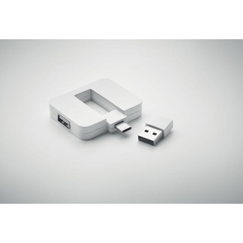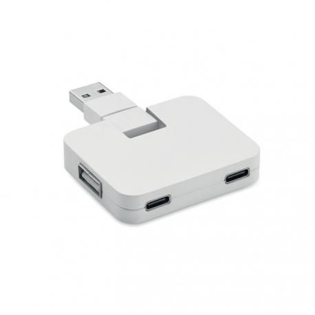 Hub 4 puertos USB 2.0 en ABS. Salida: 2 x Tipo-A y 2 x Tipo-C. Entrada: Tipo-C y Tipo-A.Recipiente :