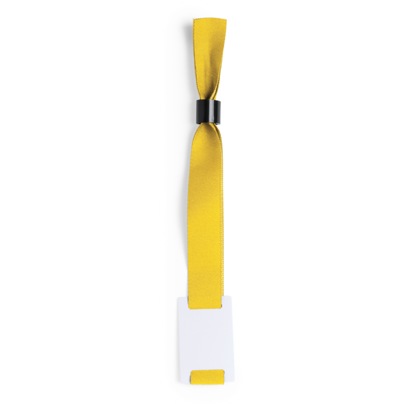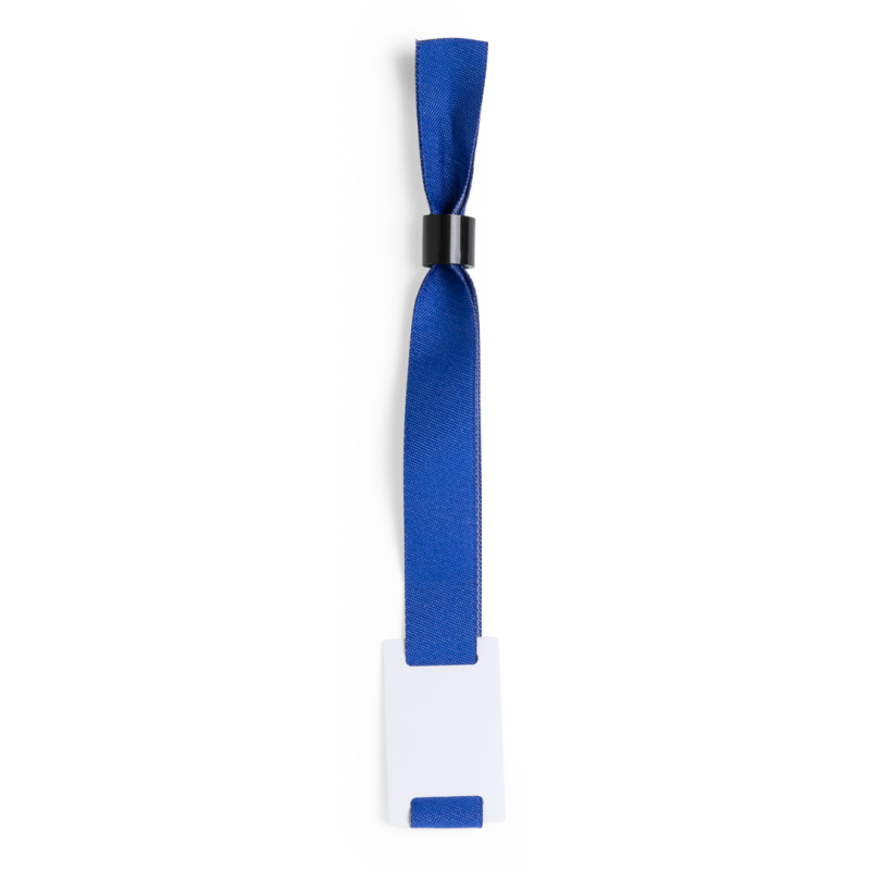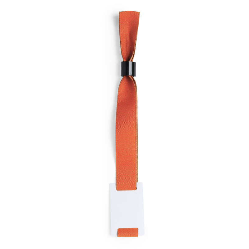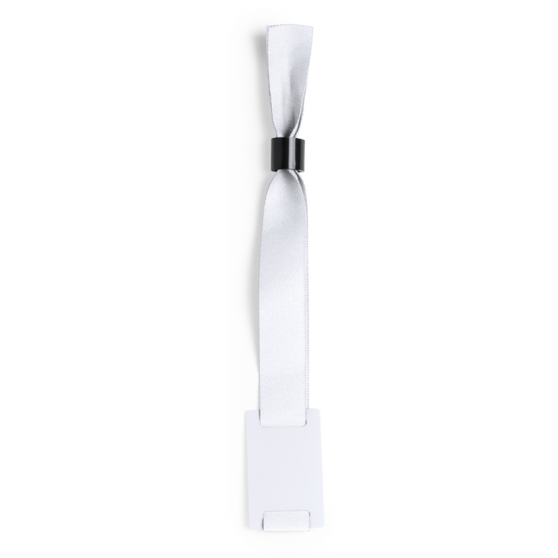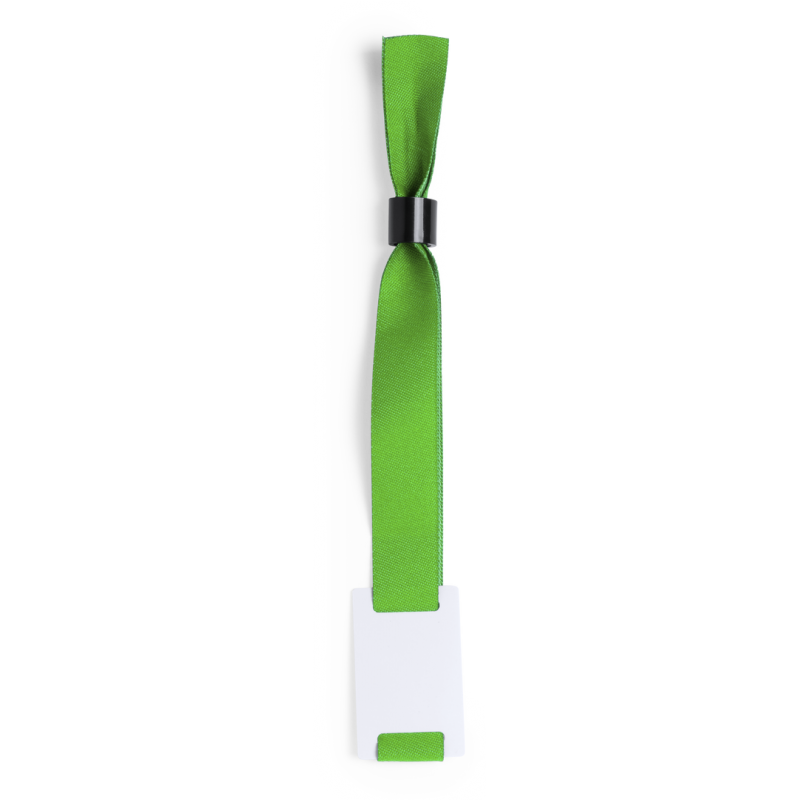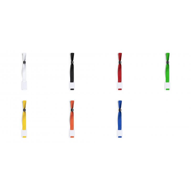 Pulsera para eventos en resistente y suave poliéster. Con cierre de seguridad ajustable y pastilla para marcaje en tampografía. Disponible en variada gama de colores.