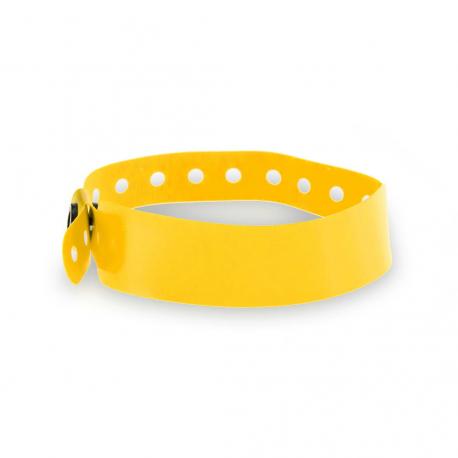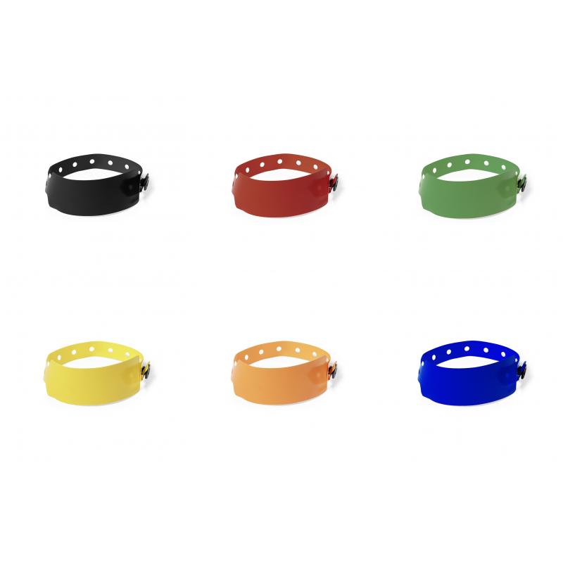 Pulsera de PVC en variada gama de vivos colores. Con cierre de seguridad de corchete ajustable.