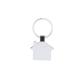 Llavero metálico co diseño de casa y detalle en color negro.
