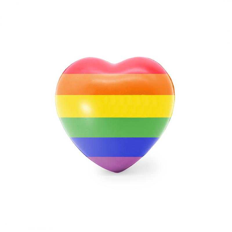 Antiestrés en forma de corazón con diseño Rainbow, fabricado en un suave cuerpo con acolchado de PU brillante.