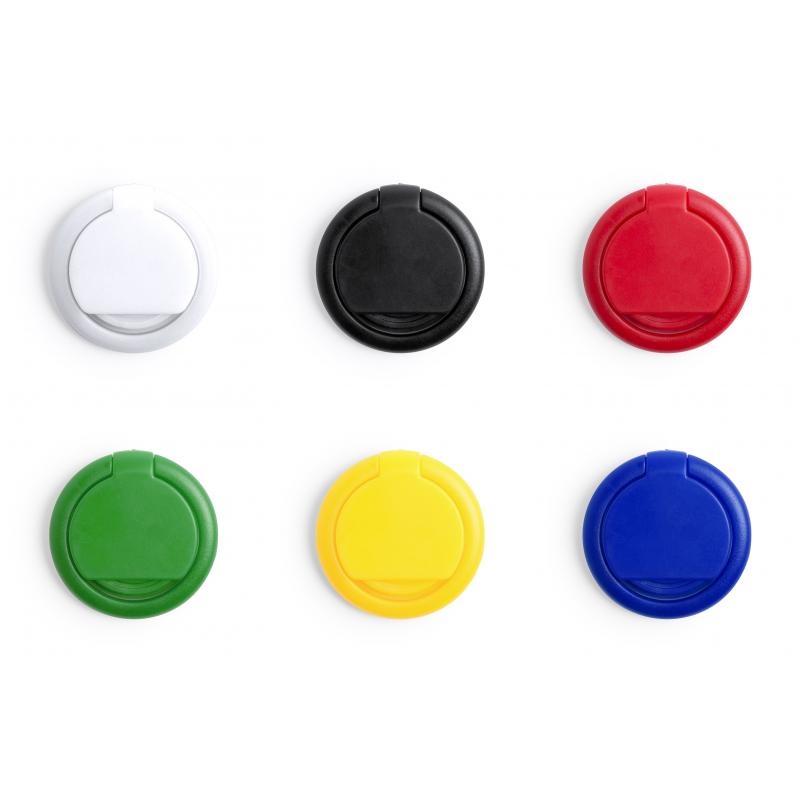 Soporte adhesivo para smartphone con moneda para carro integrada, en variada gama de colores.Con anilla posterior 360º para dedo con función doble de soporte y accesorio para selfies.