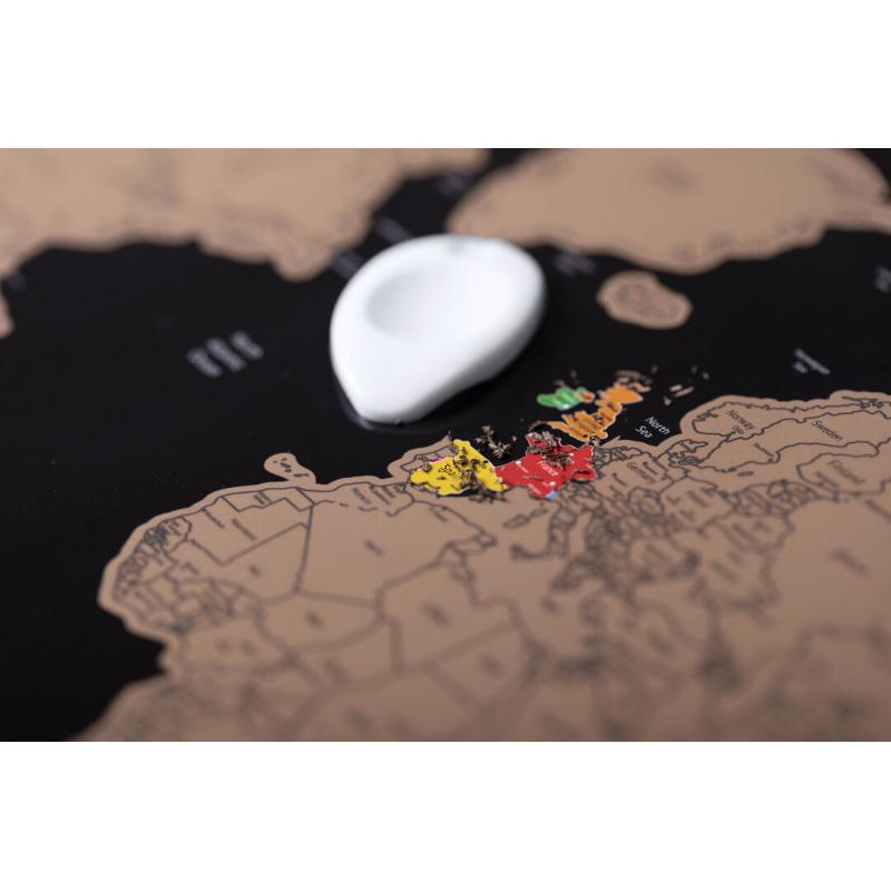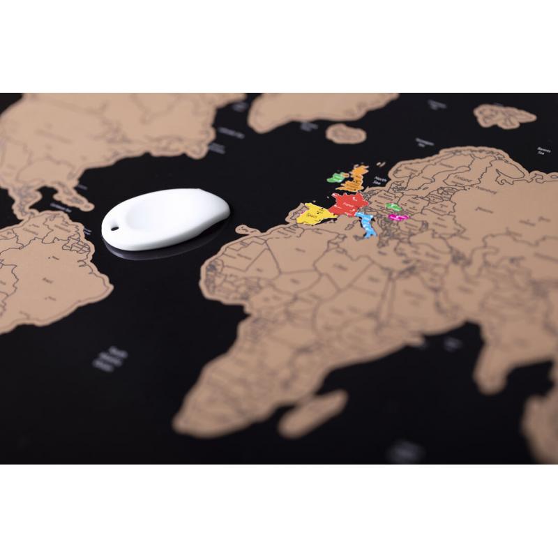 Mapamundi de línea nature para los más viajeros. Fabricado en papel laminado, basta con rascar la superficie del país que se desee para que aparezca como marcado. Incluye rascador y viene presentado en un atractivo estuche de cartón de diseño eco.