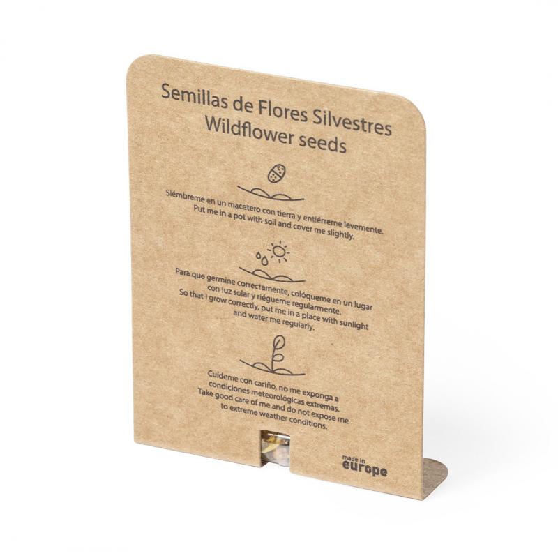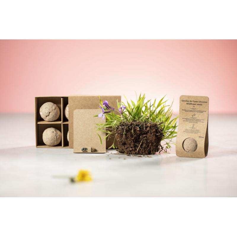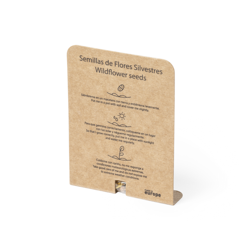 Cápsula de semillas, presentada en estuche de cartón reciclado con instrucciones de plantado y distintivo Made in Europe. Flores silvestres en colores surtidos.