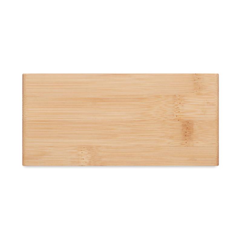 Cargador inalámbrico con carcasa de bambú. Incluye reloj despertador con pantalla LED azul y temperatura. Enchufe adaptador AC-DC. Output inalámbrico: DC5V/1A (5W). Compatible con últimos androids, iPhone® 8, X y más recientes. No apto en Reino Unido.