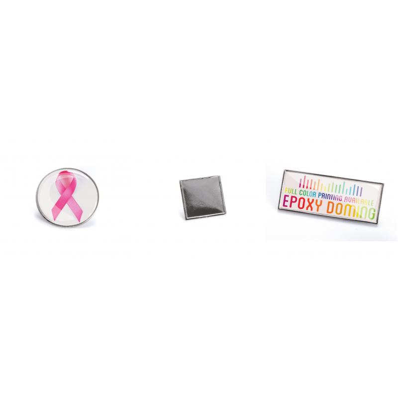 Pin metálico 100% personalizable especialmente diseñado para marcaje a todo color. Impresión a todo color incluida y doming incluido. Para pedidos a partir de 300 unidades. Cliché no incluido.