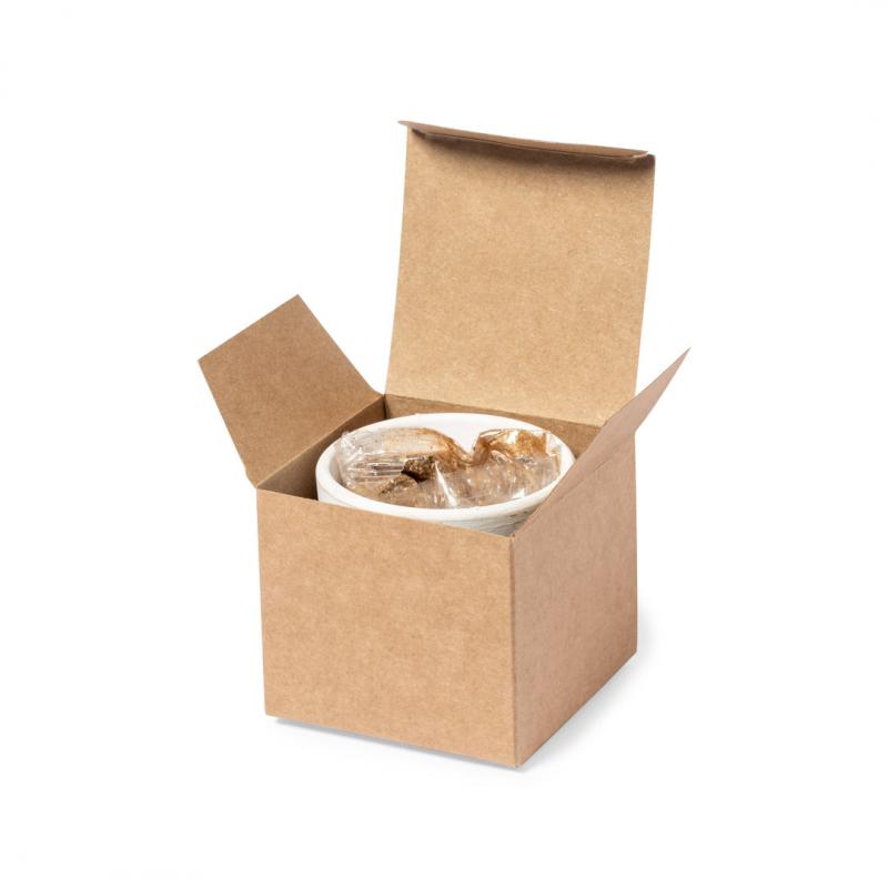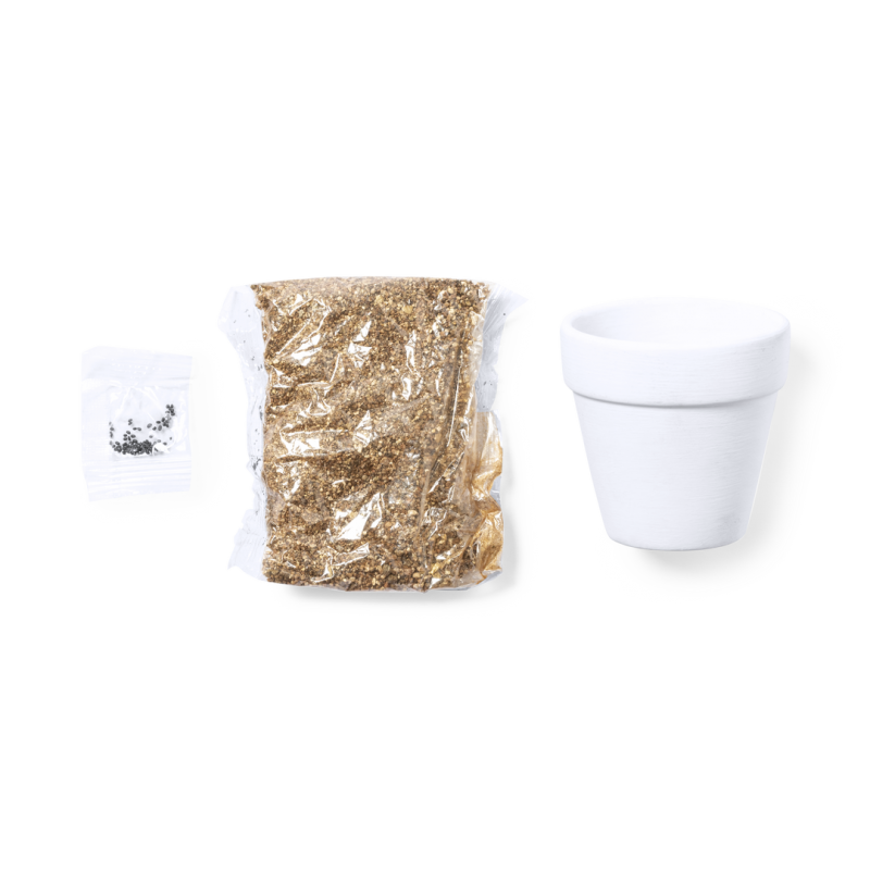 Maceta de línea nature con semillas de cactus. Macetero en terracota blanca y bolsita de sustrato de crecimiento. Presentación en caja individual kraft.
