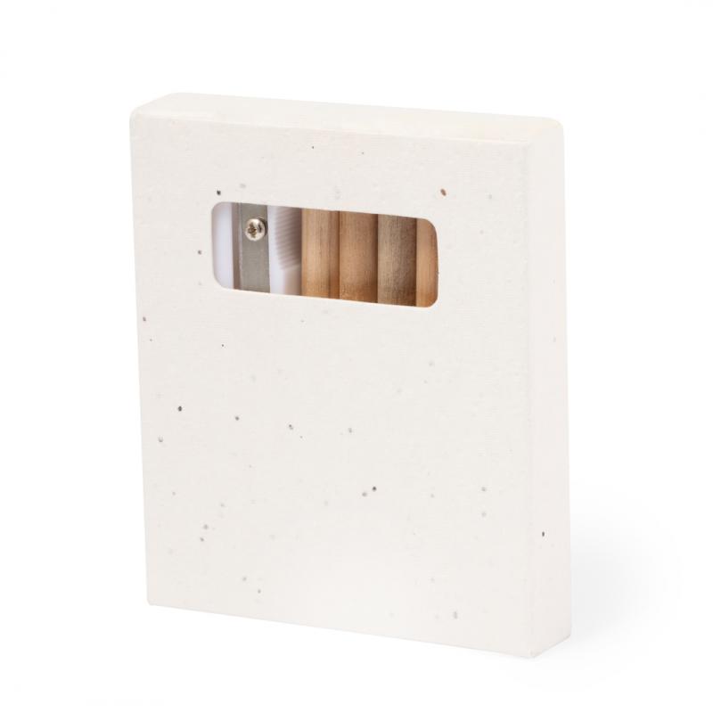 Set de 6 lápices con plantillas para colorear y sacapuntas, presentado en caja de cartón natural con semillas. Lápices de madera con cuerpo redondo de acabado natural y minas en variada gama de colores. Incluye semillas de petunia en la caja, convirtiéndolo así en cartón plantable al final de su vida útil. Flores en colores surtidos, con instrucciones de plantado en la cubierta trasera.