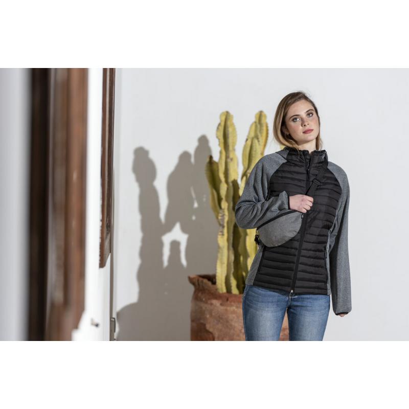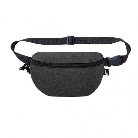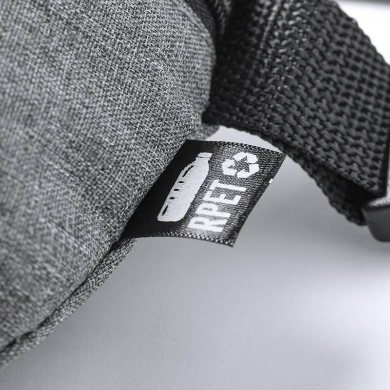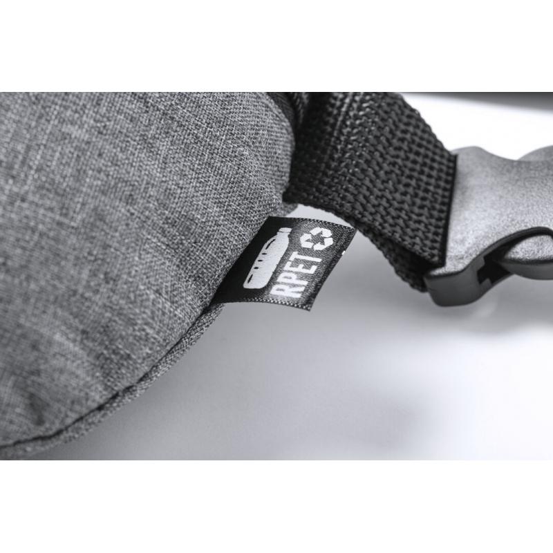 Riñonera de línea nature fabricada en resistente 600D RPET efecto melange. Elaborado a partir de plástico reciclado para así fomentar la reutilización de residuos plásticos y contribuir a la sostenibilidad del planeta. Compartimento principal con cierre de cremallera y cinta ajustable con cierre de hebilla. Diseñada para actividades deportivas y de ocio, con distintivo RPET en etiqueta exterior.