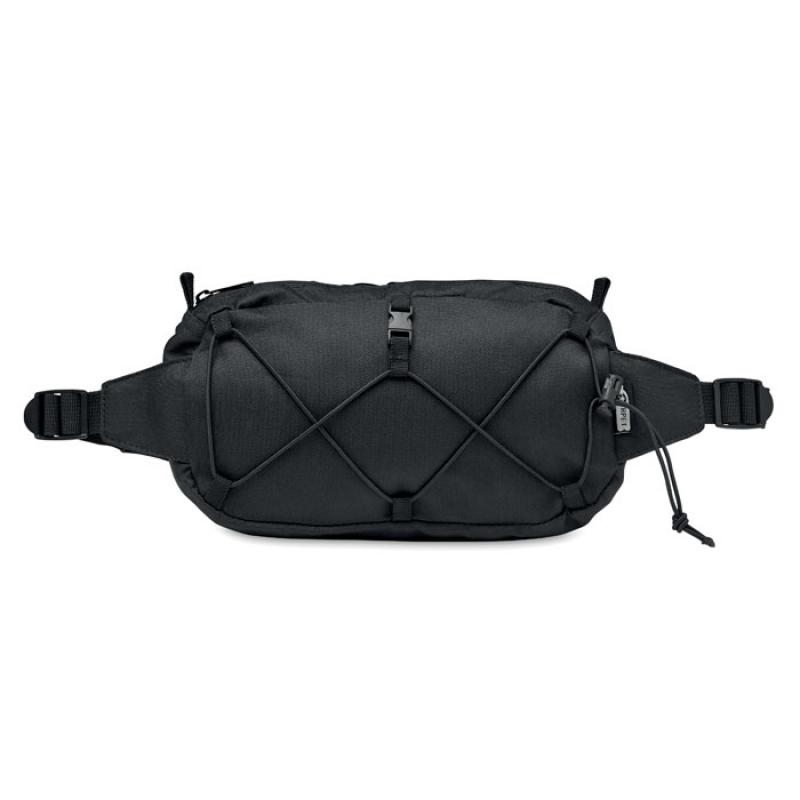 Riñonera de poliéster RPET 600D con compartimento principal con cremallera y correa de cintura ajustable. Incluye bolsillo interior.