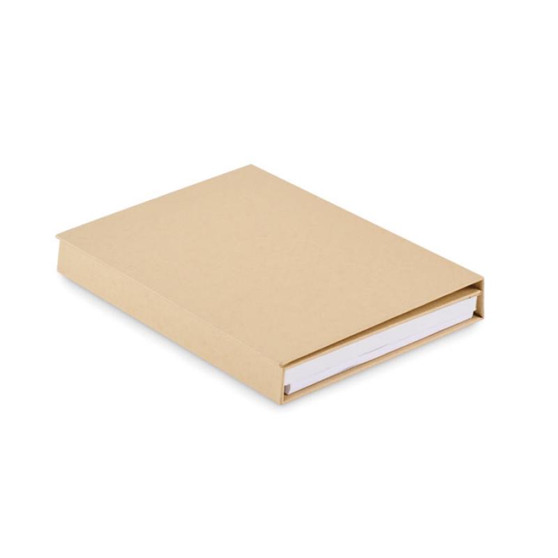Set de bloc de notas con tapas de cartón reciclado. 70 hojas rayadas recicladas. Blocs de notas adhesivas y marcadores de página. Bolígrafo con cuerpo de papel y piezas de ABS, sacapuntas de ABS, 2 lápices de madera, regla de madera de 15 cm y transportador de PP.Recipiente :