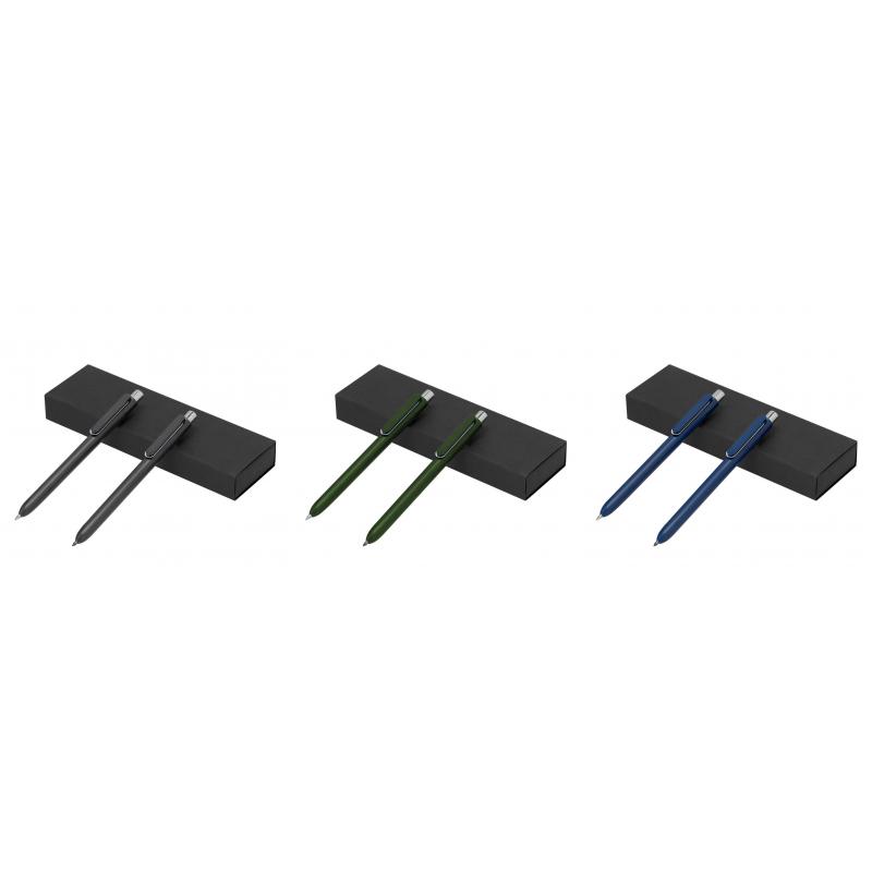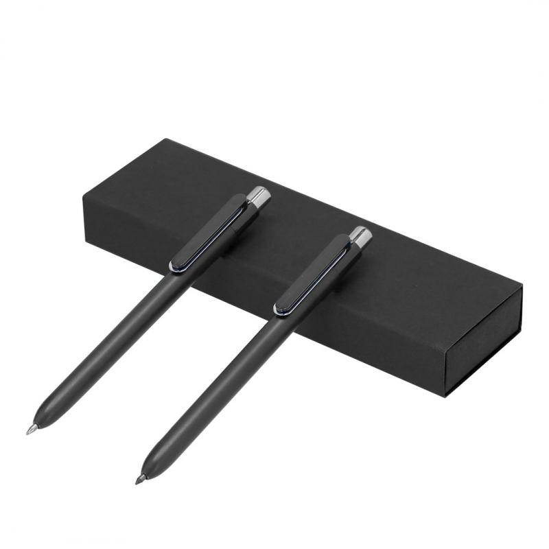Set compuesto por un bolígrafo de tinta azul y un lápiz eterno, ambos fabricados en RABS. El lápiz eterno ofrece escritura continua, evitando generar residuos, y ambos cuentan con mecanismo pulsador. Diseñados con clip a juego y detalles cromados. Presentados en estuche de cartón reciclado de color negro. Con distintivo de RABS impreso.
