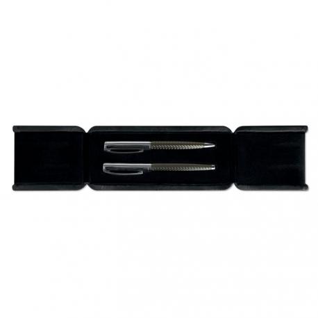 Set de bolígrafo giratorio y roller en caja de regalo. Tinta azul.