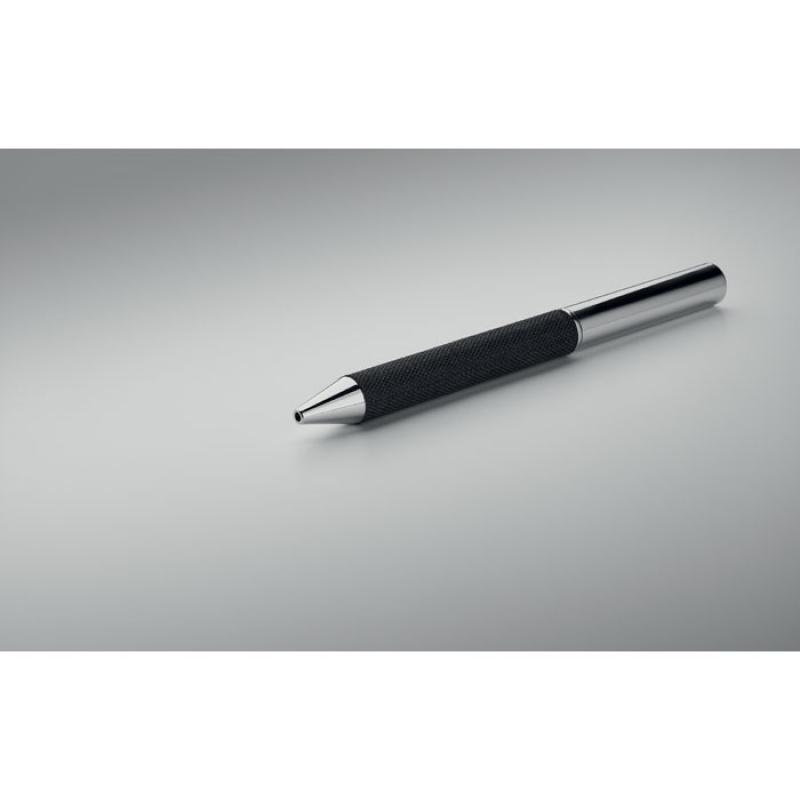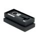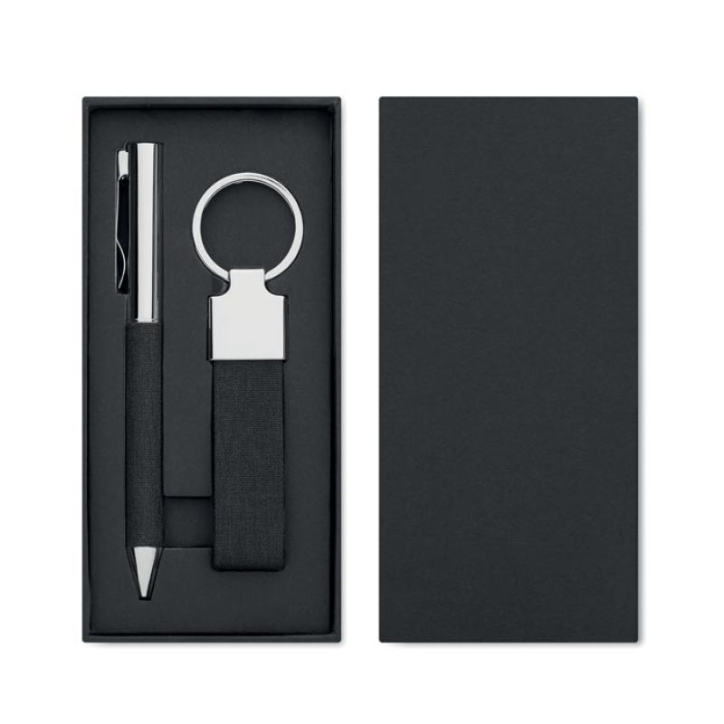 Set de regalo de 2 piezas en caja de regalo. Incluye bolígrafo metálico con detalle de poliéster RPET y llavero de poliéster RPET. Tinta azul.Recipiente :