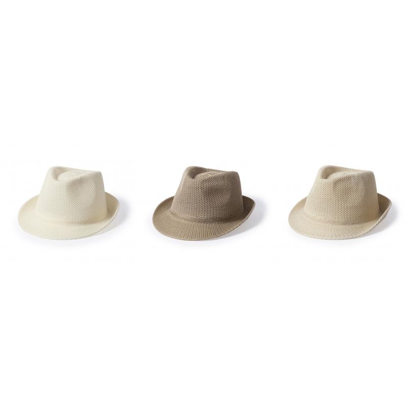 Sombrero de alta calidad en material sintético de sobrios colores con confortable cinta interior a juego.