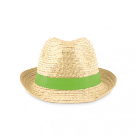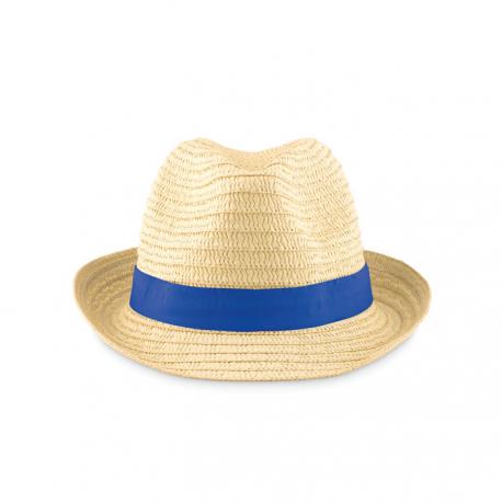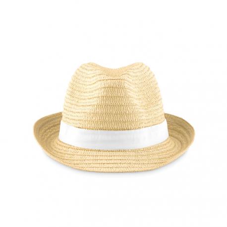 Sombrero de papel paja con cinta de poliéster. En los pedidos sin impresión, las cintas se servirán sueltas y separadas del sombrero.