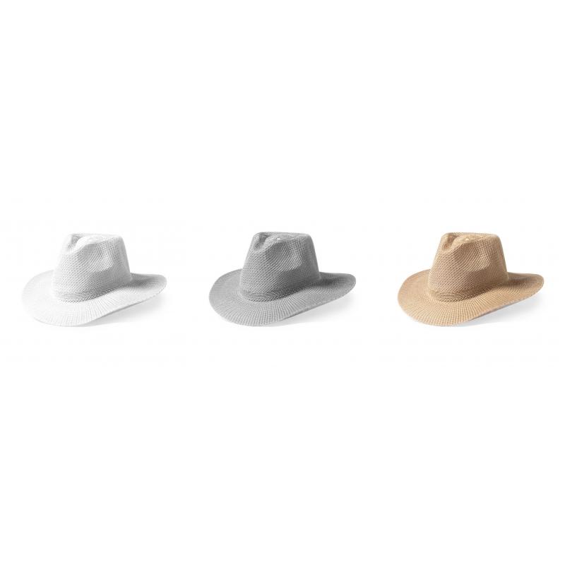 Sombrero en material sintético de sobrios colores con confortable cinta interior a juego.