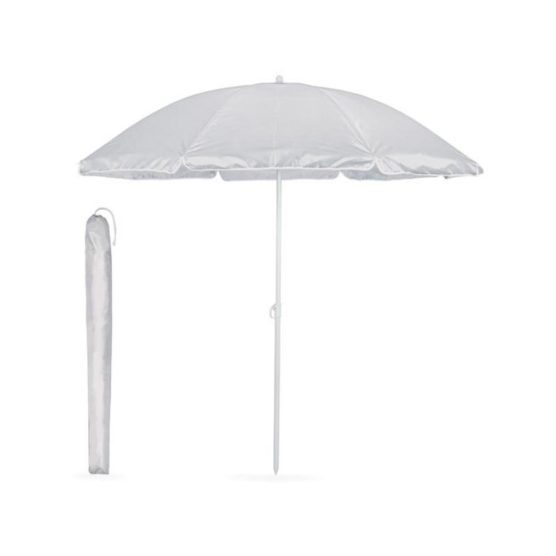 Sombrilla de poliéster 210T con revestimiento interior UV para protección (SPF 30+). Ligero y ajustable. Funda incluida. Diametro: 1,5 metros.