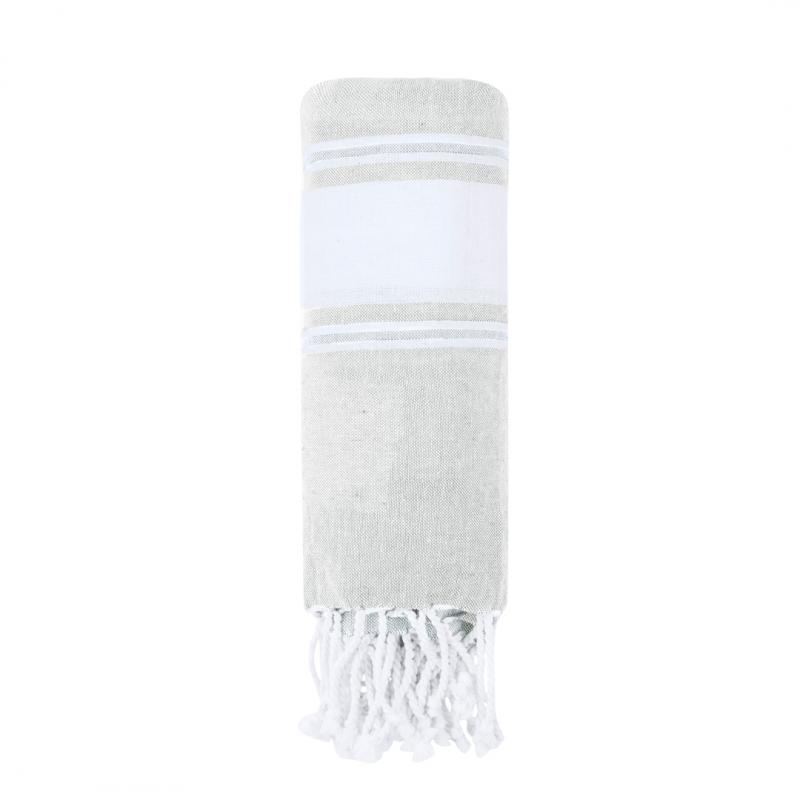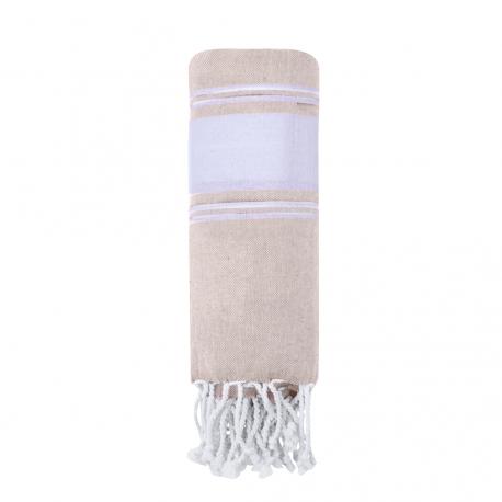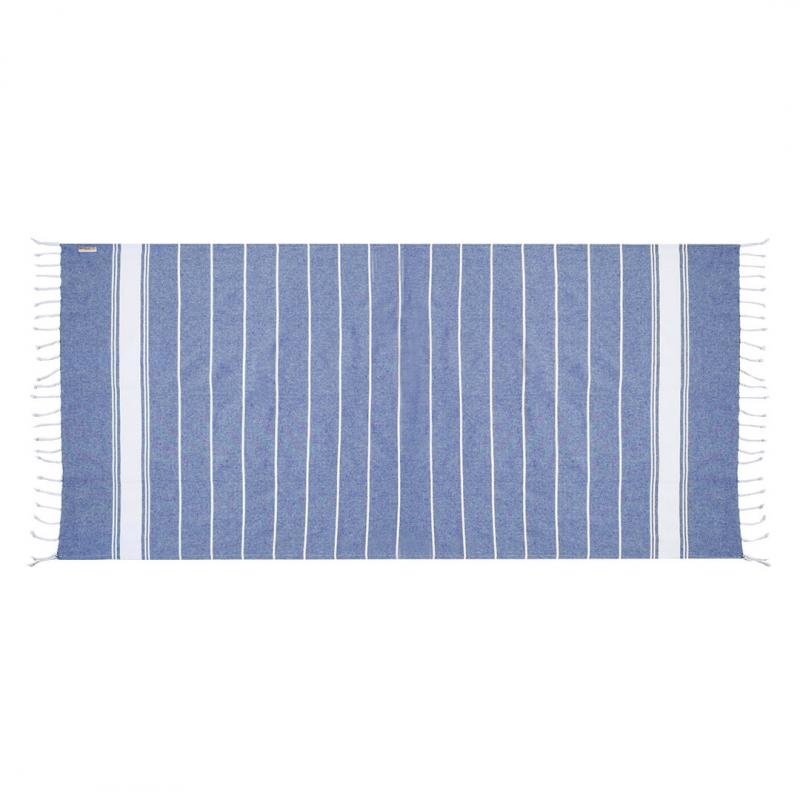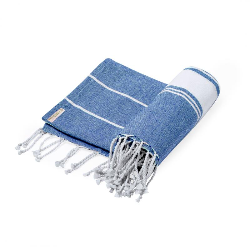 Suave pareo toalla en 100% algodón reciclado de 180g/m2. Disponible en variada gama de colores en tono bicolor. Logotipo en etiqueta lateral. Presentado individualmente en bolsa.