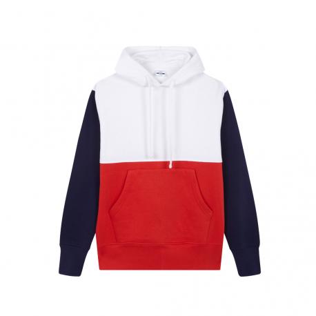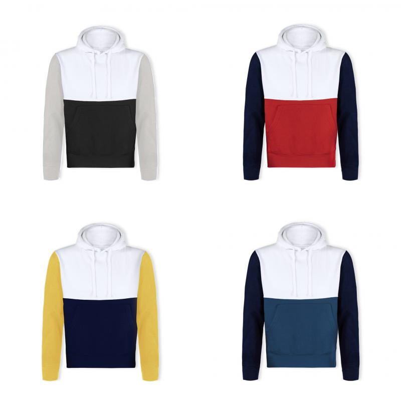 Sudadera unisex tricolor con capucha. Bolsillo canguro y elásticos de ancho extra para un ajuste perfecto. Confeccionado en mezcla de algodón y poliéster con un gramaje de 280g/m2. Interior de felpa cepillada para una mayor sensación de calidad. Tacto suave y corte moderno. Cordones ajustables planos y ojetes de confección, evitando así el uso de metal. Dobles costuras para una mayor durabilidad y resistencia al uso intensivo. Etiqueta fácilmente removible. Disponible en tallas XS, S, M, L, XL y XXL.