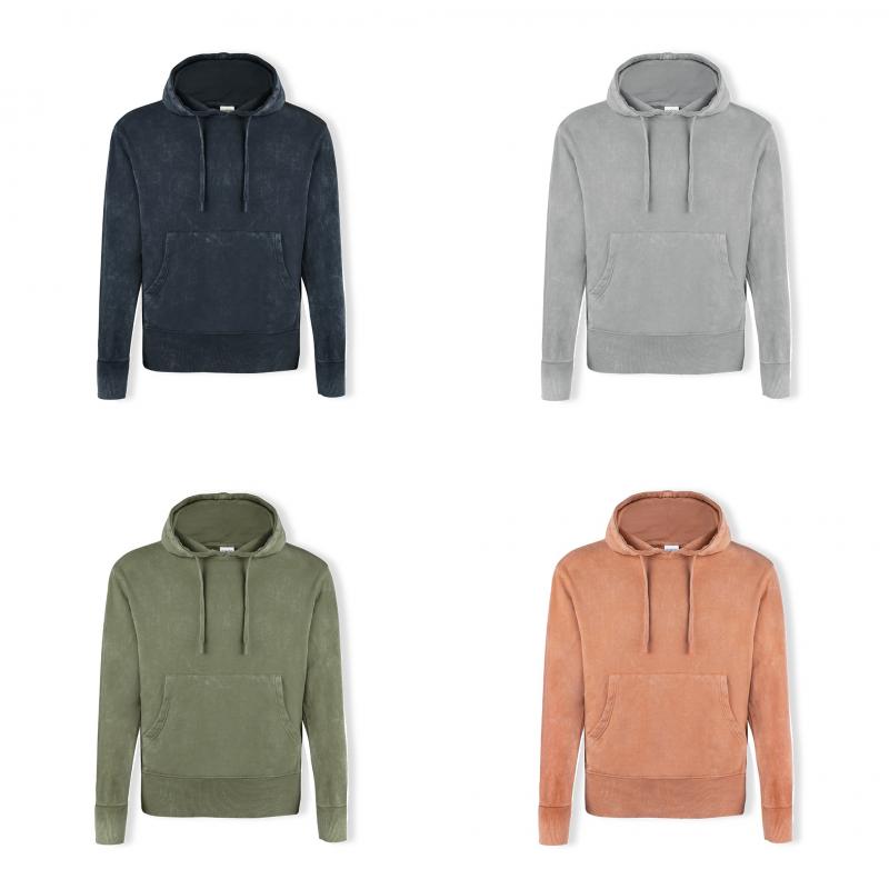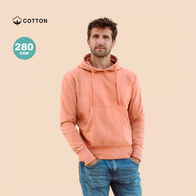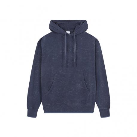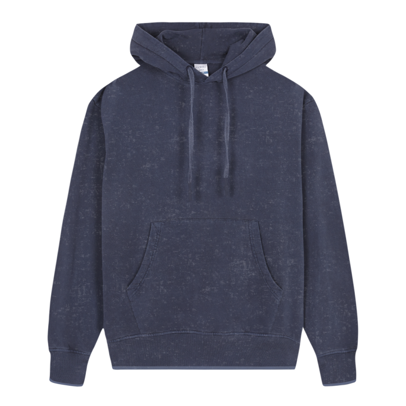 Sudadera unisex con capucha y tejido con efecto lavado jeans lo que hace que cada pieza sea única e irrepetible. Bolsillo canguro y elásticos de ancho extra para un ajuste perfecto. Detalle en contraste en elástico de puños y bajo. Confeccionado en 100% algodón peinado con un gramaje de 280g/m2. Tacto suave y corte moderno. Cordones ajustables planos y ojetes de confección, evitando así el uso de metal. Dobles costuras para una mayor durabilidad y resistencia al uso intensivo. Etiqueta fácilmente removible. Disponible en tallas XS, S, M, L, XL y XXL.