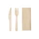 Set de cubiertos ecológicos 3 en 1 de madera natural con servilleta. Incluye: tenedor, cuchillo y servilleta de papel en color kraft. Presentado en bolsa individual.Elaborado con elementos vegetales para así fomentar la utilización de materias primas naturales y reducir las emisiones contaminantes.
