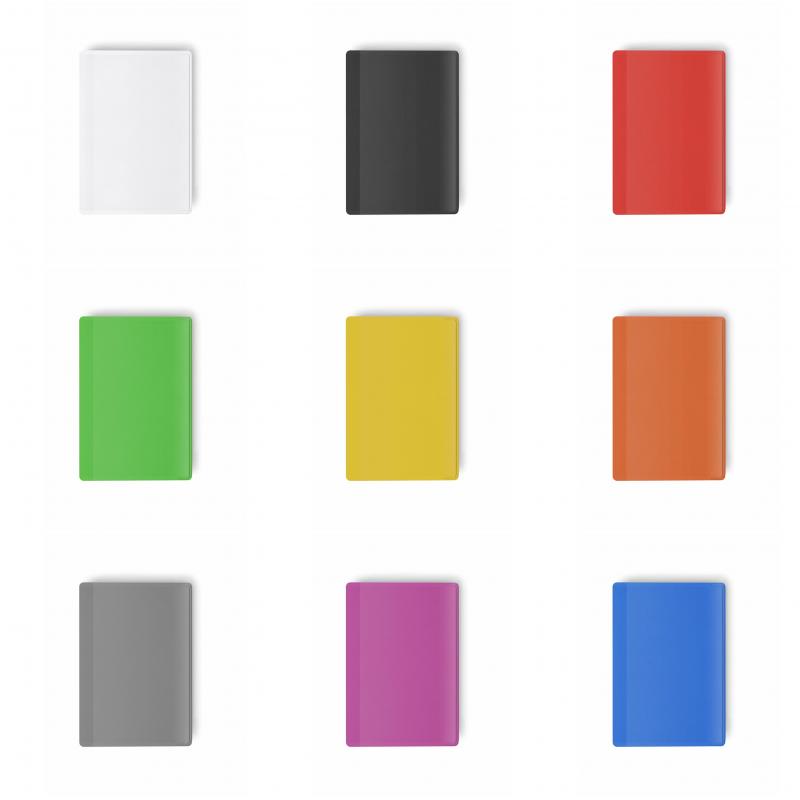 Tarjetero de un compartimento acabado en PVC y en divertidos colores.
