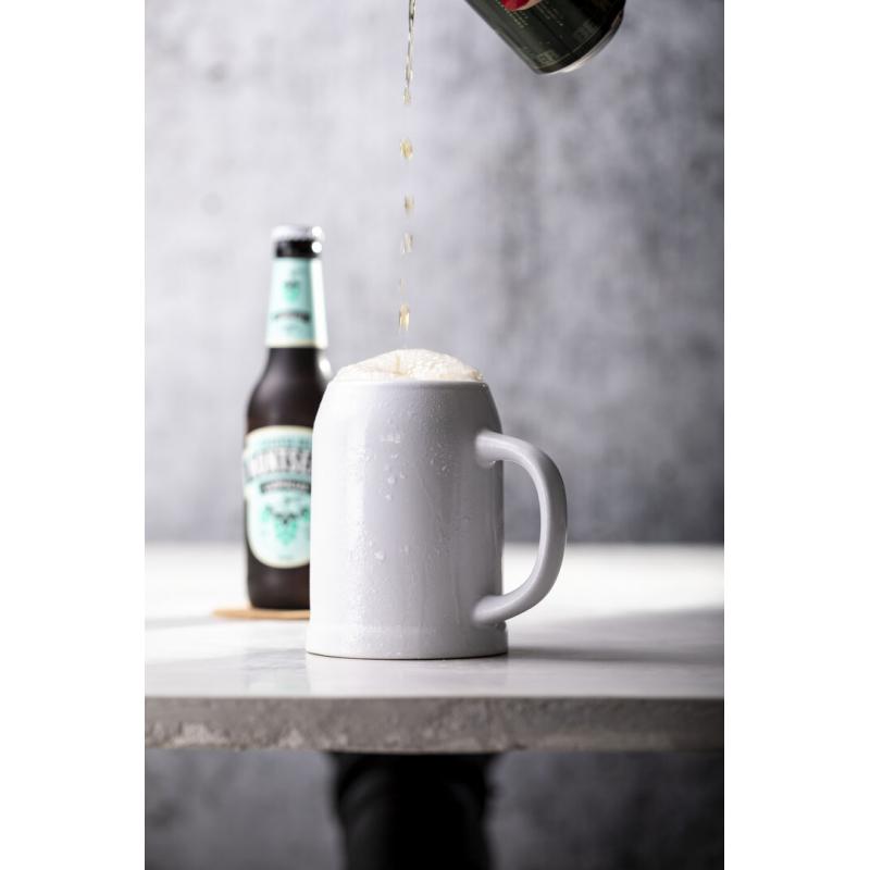 Jarra de cerámica en elegante acabado blanco para los más cerveceros. De 700ml de capacidad y con cómoda asa. Apta para lavavajillas, microondas y presentada en caja individual blanca.