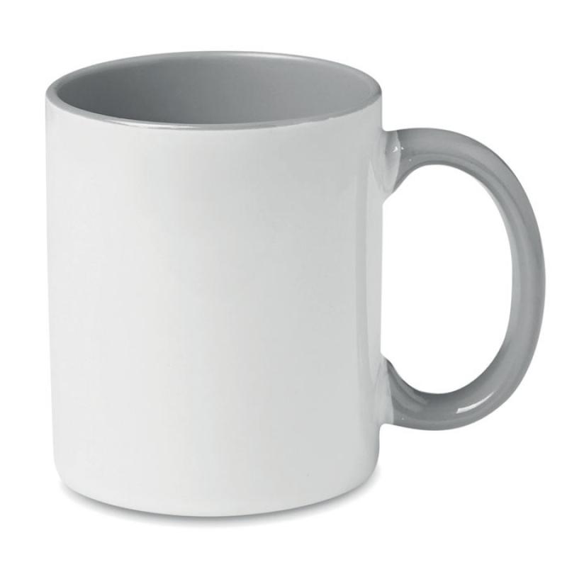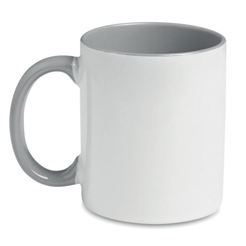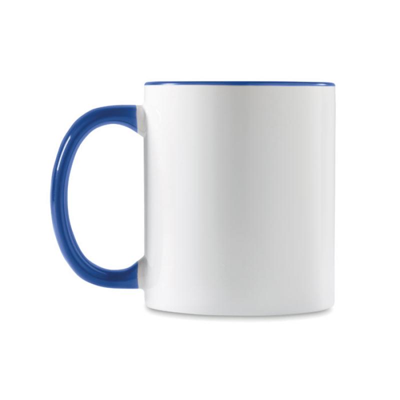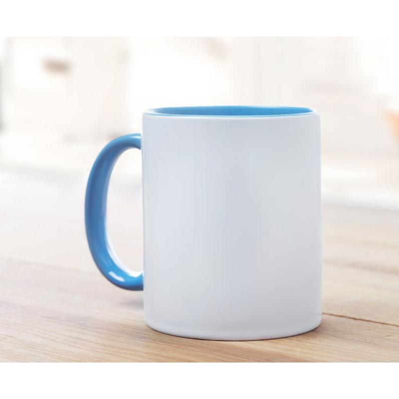 Taza de cerámica de 300 ml. Con acabado especial para marcaje en sublimación. Asa e interior con color.