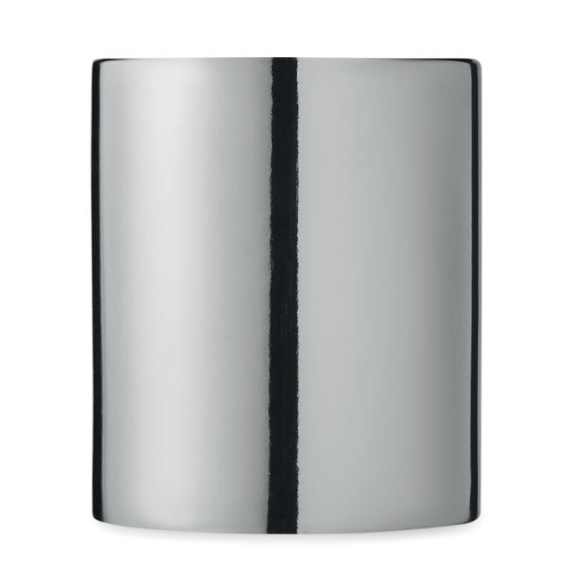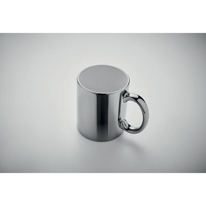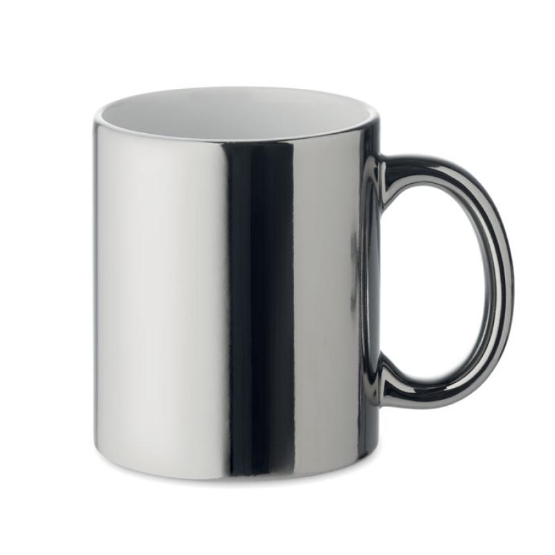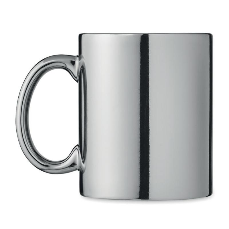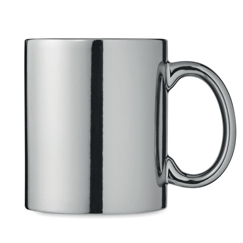 Taza clásica de cerámica con acabado metálico. Capacidad: 300 ml.