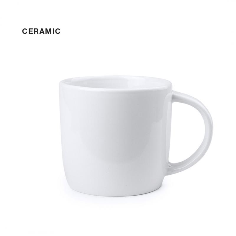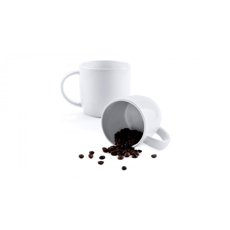 Taza de cerámica de 380ml de capacidad en color blanco para los amantes del café largo. Presentada en caja individual.