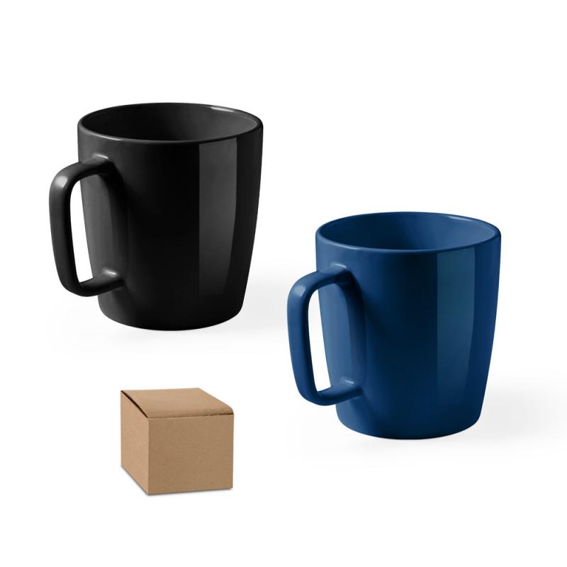 Taza de cerámica con acabado brillante. Capacidad hasta 450 mL. Se entrega en caja de papel Kraft. La taza es apta para lavavajillas y resistente a, al menos, 125 ciclos de lavado (incluida la impresión) según EN12875-1Recipiente :